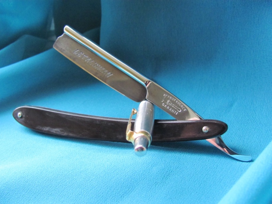 Peroux-Cognet, Garanti "Le Talisman" Ручка : рог, проставка из кости, родная, в очень приятном состоянии. Полотно: фреймбэк, патенированный под легкое воронение. Дополнение: Наточена и готова к бритью, бритва полностью отреставрирована, на полотне есть легкие следы времени, специально не делал блестящим, захотелось придать полотну естественного шарма, по этому нанес легкий слой воронения. Продана. Le Talisman Show