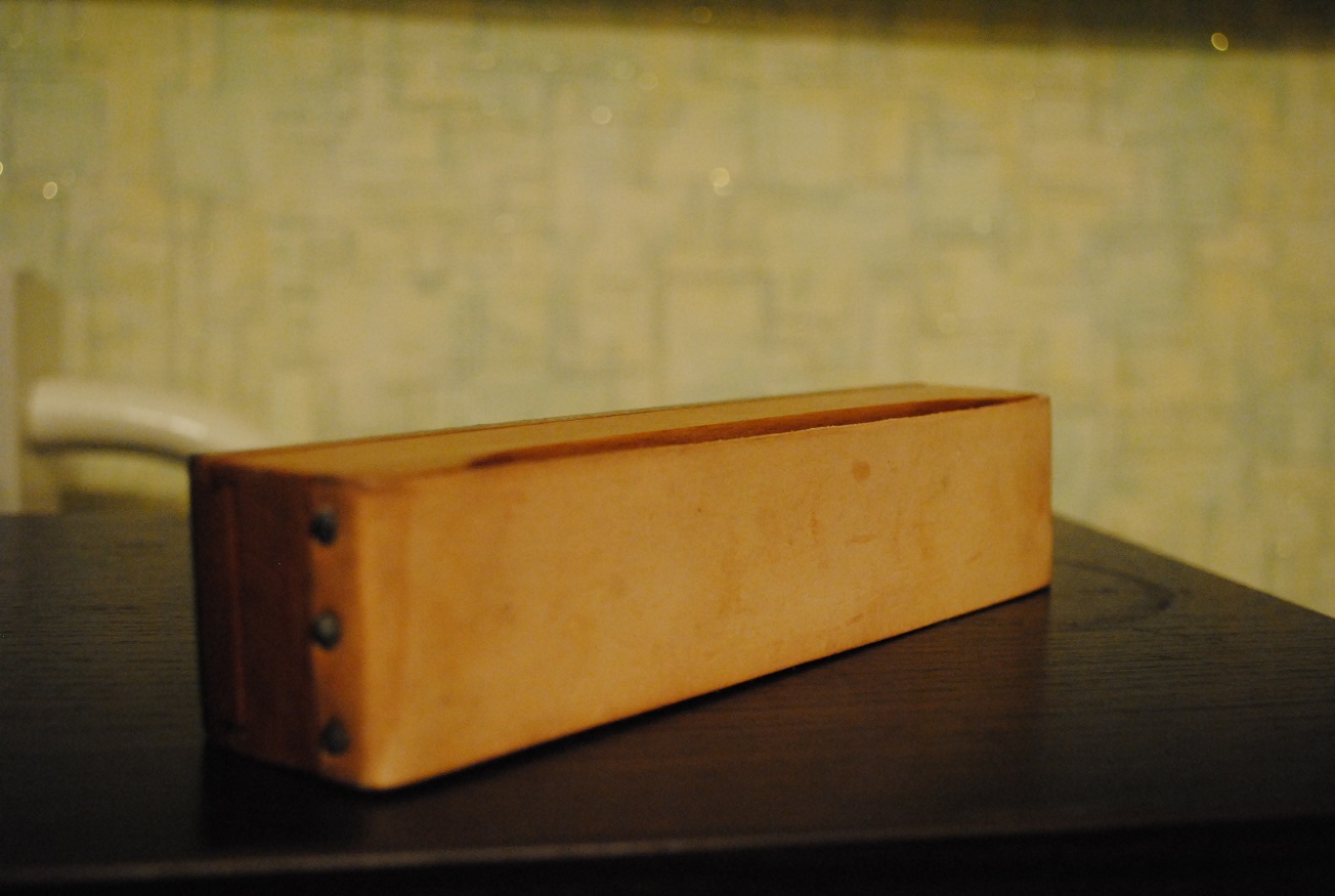 Размеры пенала: длина 200 мм. ширина 41 мм выс. 40 мм. Крышка закрывается плотно (не болтается), .. дерево не идеальный материал и поэтому появились небольшие зазоры между крышкой, но учитывая "его" возраст, думаю это простительно. ПРОДАН. Spoiler Show