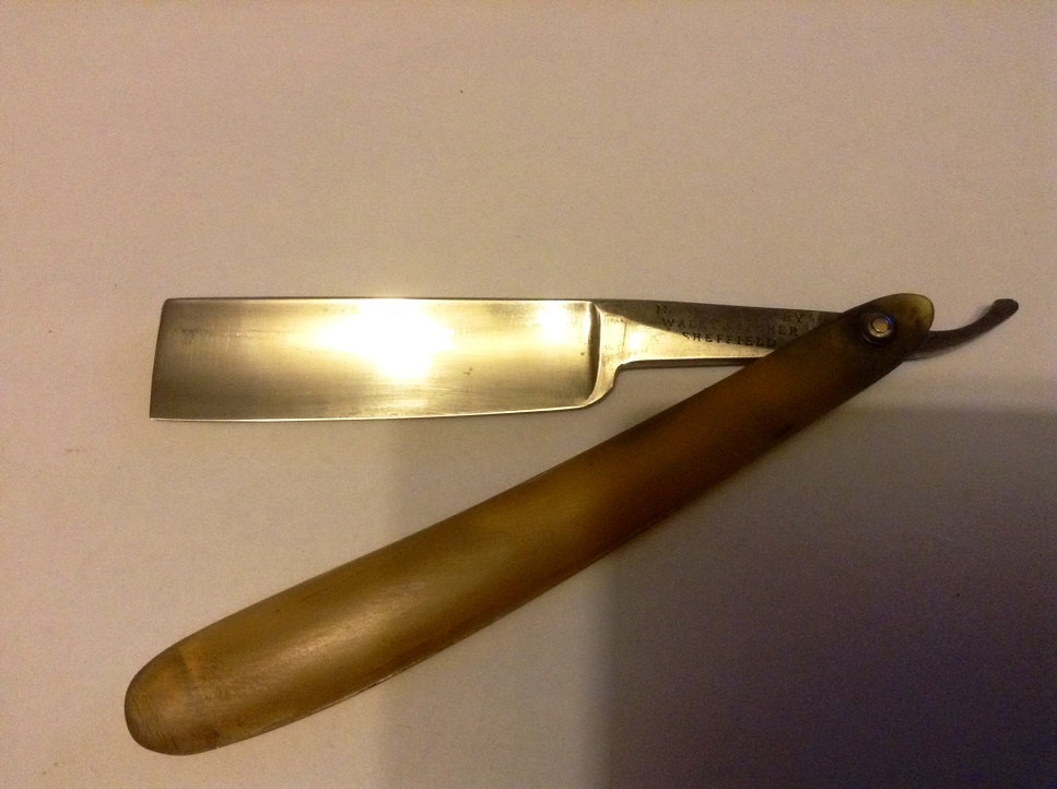 Насколько я знаю, это старая английская бритва из Шеффилда. По словам продавца, это конец 19 века. Но почему она такая "толстая", семь с небольшим мм, я имею в виду толщина обуха? Интересует примерный возраст и стоимость. Рукоять из рога, всего одна небольшая трещинка у пина. Да и вообще, накидайте информации побольше!