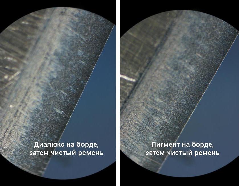 Re: Доводка бритвы на ремне с пастойКрасная Dovo для более-менее регулярной работы, от зеленой более сильный эффект.  Связано с бОльшим содержанием абразивных зерен в пасте. Зеленая паста близка в этом отношении (по микронам) среднему номеру пасты ГОИ.
