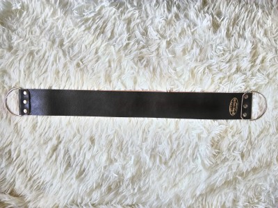 Ремень очень прочный и гибкий, можно без боязни сворачивать, потом разворачивать и тут же на нем править. Можно сколько угодно раз наносить с помощью растворителей различные пасы и так же с помощью растворителей их удалять и снова наносить другие. Ремень не боится влаги, можно протирать влажной тряпкой. Мой личный ремень за года три не изменил своего вида (ну разве что иногда мохрился по краям - просто отрезал ножницами, или подпаливал зажигалкой и как новый), поверхность даже не собирается стираться (и это при том что у него есть ещё и вторая точно такая же!)
