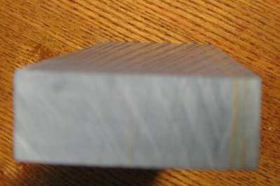 Для природных камней гриты считать не имеет большого смысла, но многие приводят к этому камню 12000 японских грит, как аналог работы на японской водной синтетики. Камень в работе очень тонкий, финишный - доводочный, полирует подводы. К камню прилагается кусочек из того же камня для наведения суспензии - работа будет идти быстрее, но более грубо.
