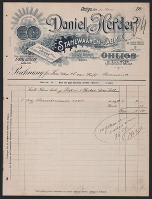 Daniel Herder, Stahlwarenfabrik, находилась в районе города Золинген Олигс.