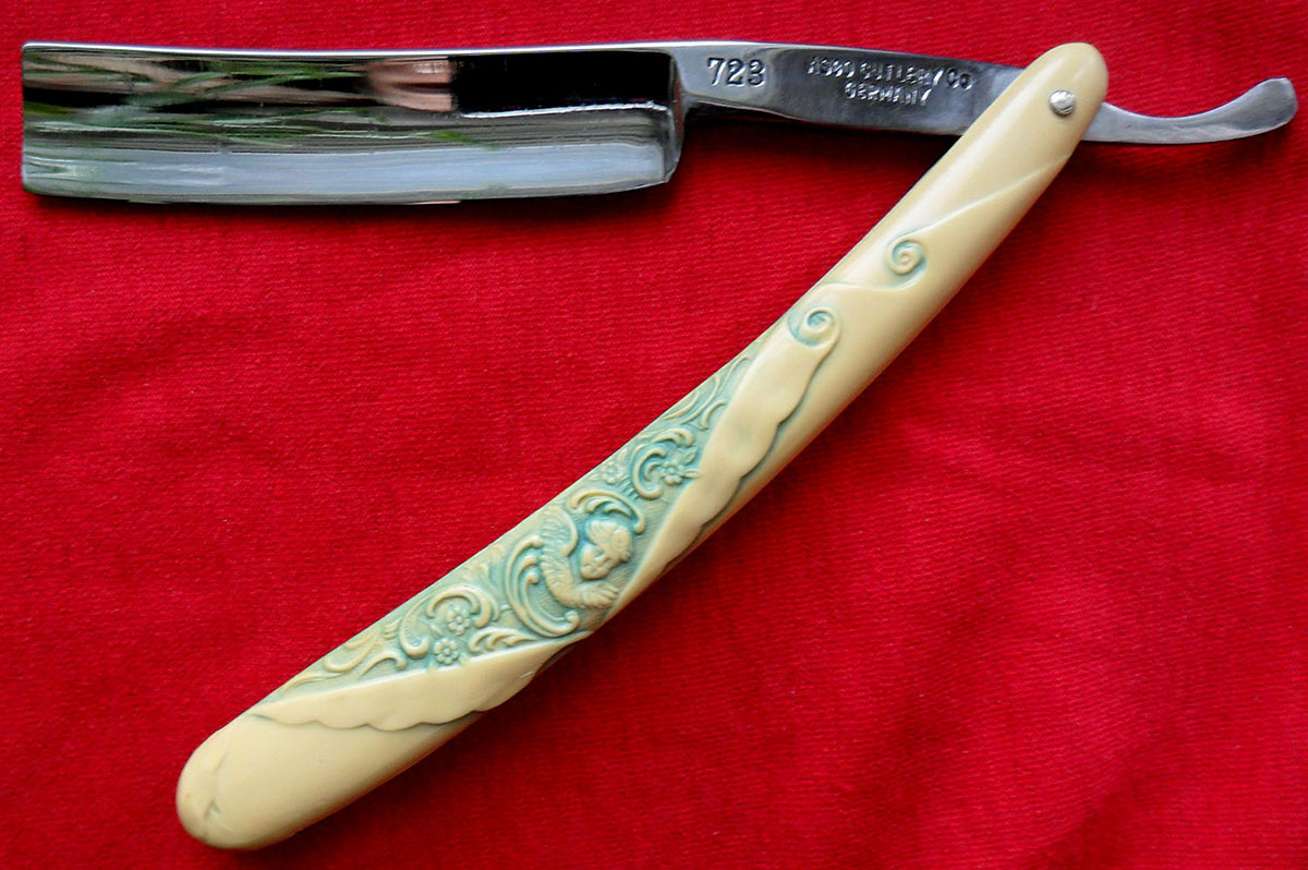 Бритва выпуска 1905-1928 годов. Подробнее о производителе можно почитать в теме http://www.britva.ru/forum/viewtopic.php?f=28&t=691" onclick="window.open(this.href);return false; Родная ручка и родные пины. Ручка - очень качественная имитация под кость. Что внешне, что тактильно - очень и очень похоже на натуральную кость. Бритва заточена и полностью готова к бритью. По Украине доставка за счет покупателя Новой почтой. Отправка в Россию почтой +8 долларов к цене бритвы.