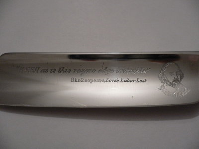 Долго думал как ее шлифануть и не попортить надпись - в результате глубоко перешлифовывать не стал ибо Шекспир вечен и его стирать нельзя.