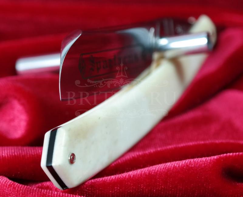 Бритва опасная "Спартак": 6/8, 1/1, углер.сталь "Сер.Крыло", ручка из кости коровы