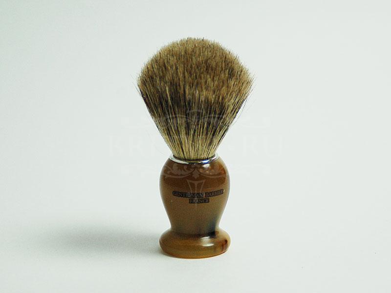 Кисточка-помазок из щетины барсука, ручка из светлого буйволиного рога