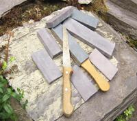 поверхности предназначены для заточки ножей. Длина камня от 100 до 150 мм, ширина – от 40 до 50 мм.