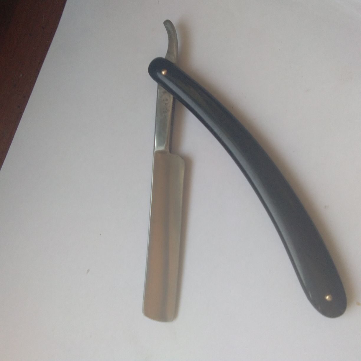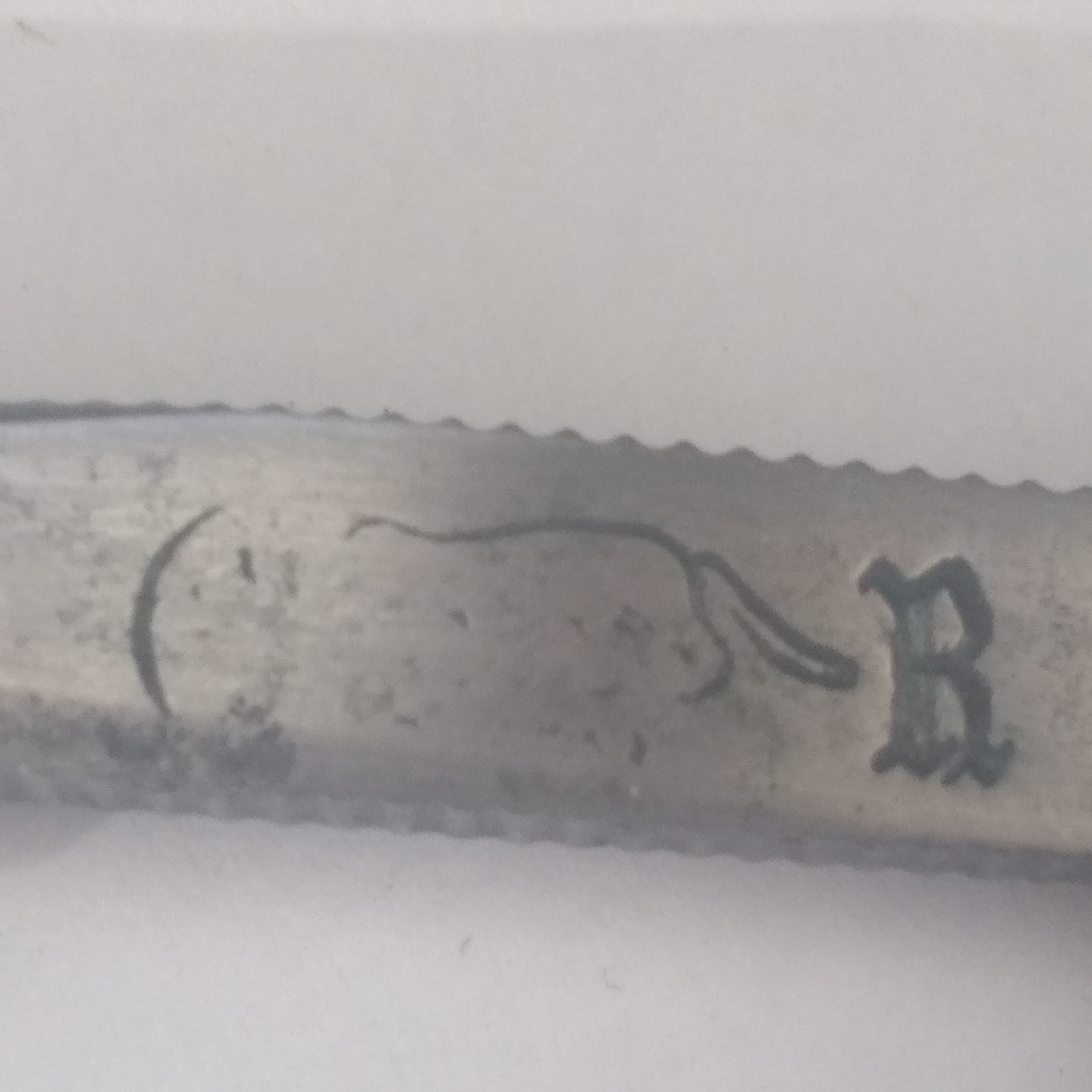 Помогите опознать.Попалась бритва помогите опознать из каких земель на эрле только с одной стороны полустертый символ как мне показалось хвост какого то животного и латинская буква,, R между ножками запятая насечка сверху и снизу буду весьма признателен.