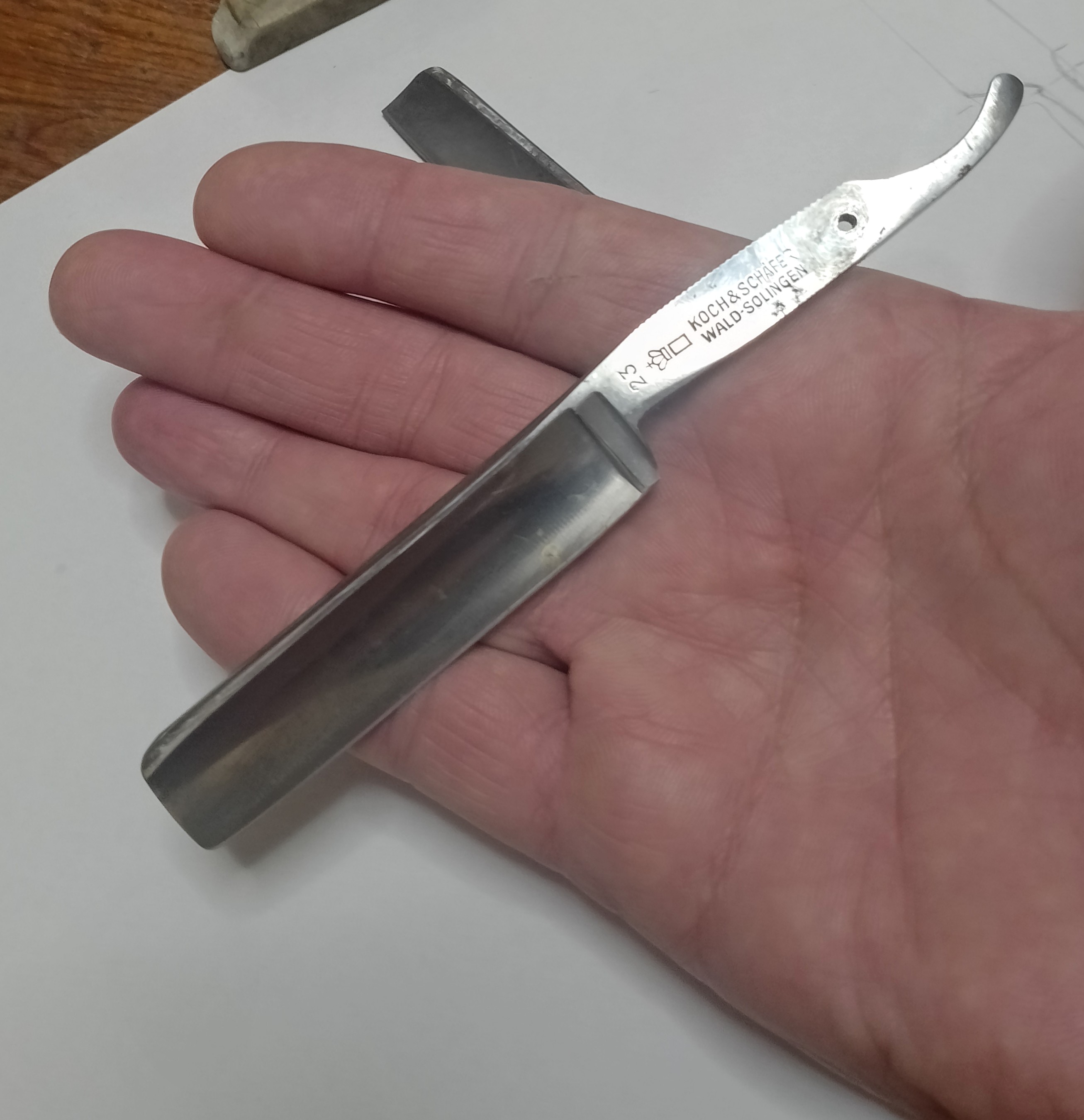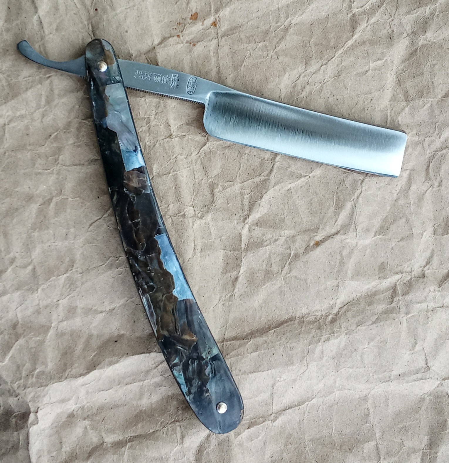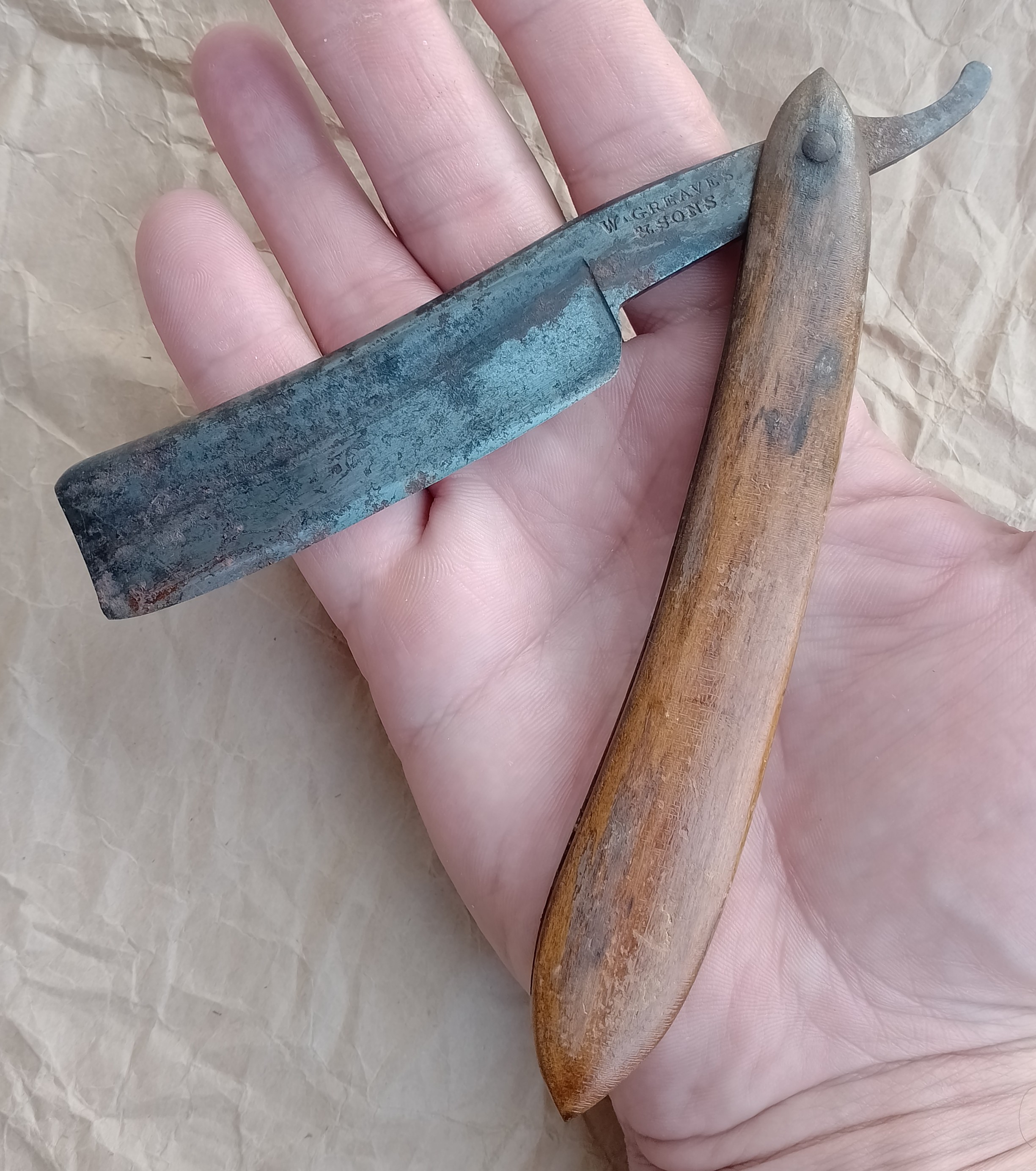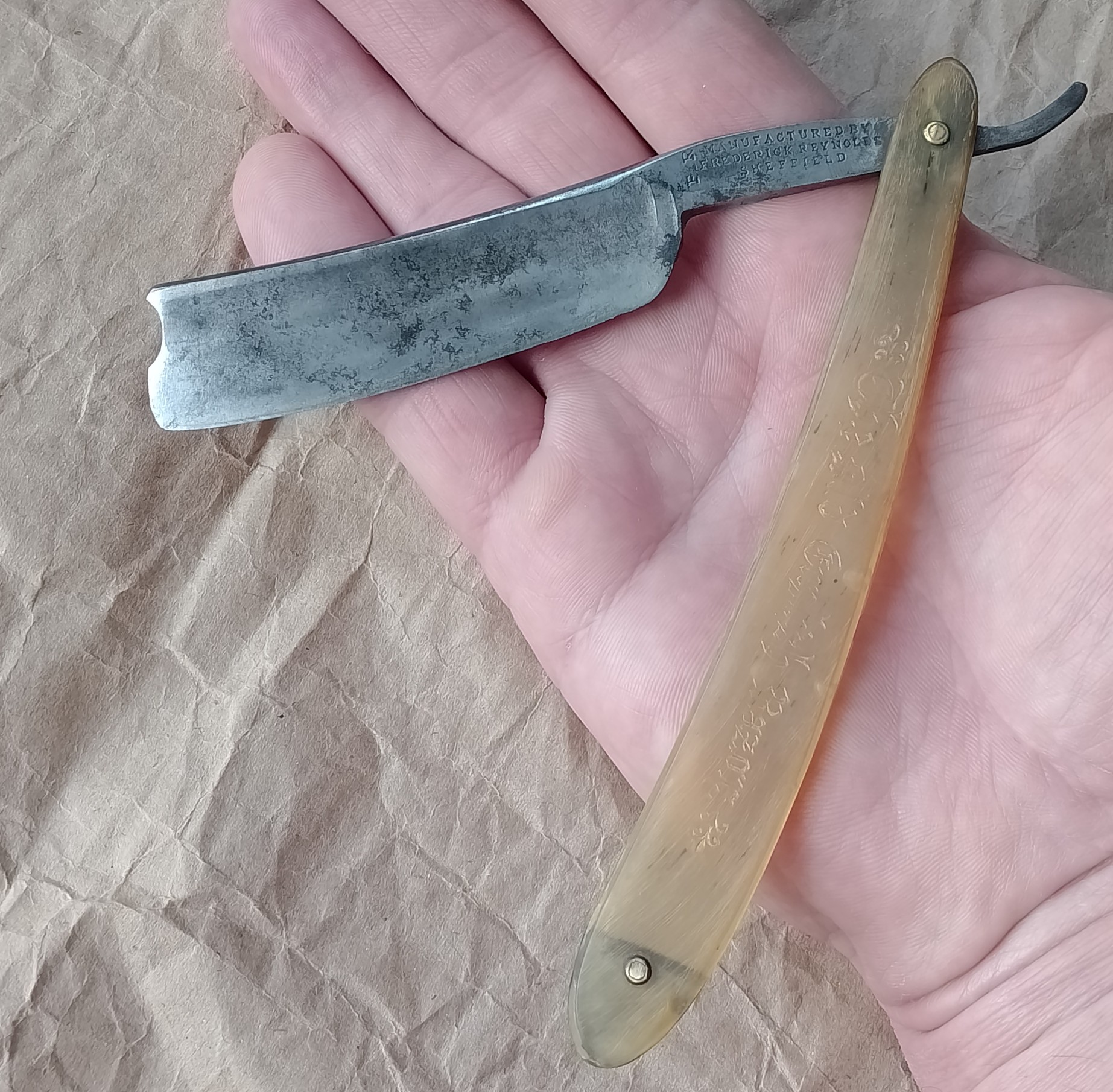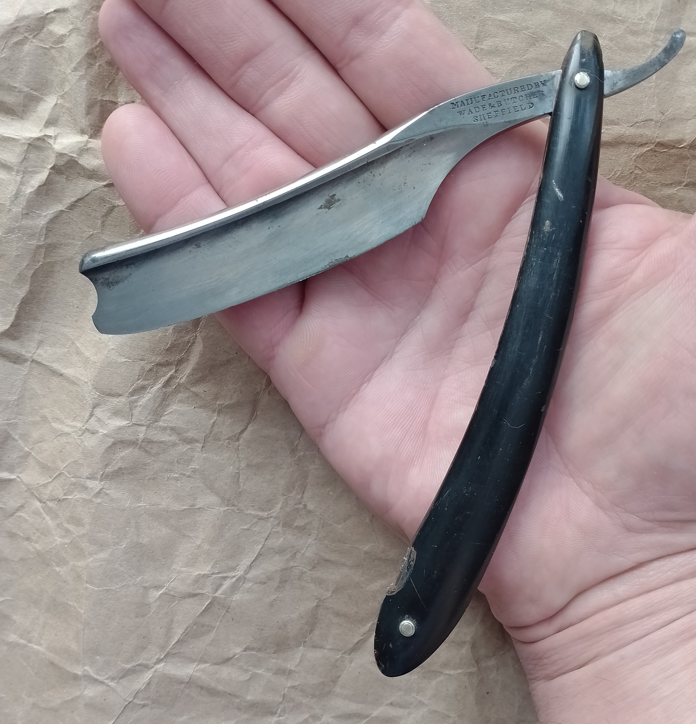 Бритва до... и после...Попался в работу английский клинок ориентировочно 1825 года. Какой-то умелец пытался из него сделать типа псевдофрейм жестоким образом на точиле. Как смог реанимировать. Поставил китовый ус и клинышек из мамонта. IMG_20230830_183406.jpg IMG_20230830_183406~2.jpg IMG_20231013_083001.jpg IMG_20231013_...