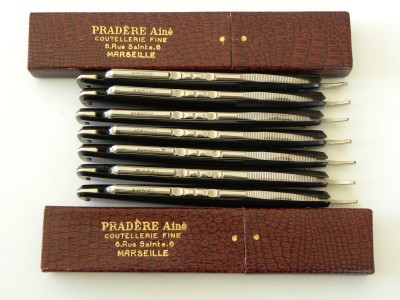 PRADÈRE AÎNÉ. 6, rue Sainte, MarseilleБритва из недельного набора. С одной стороны указан адрес магазина, с другой клеймо изготовителя?