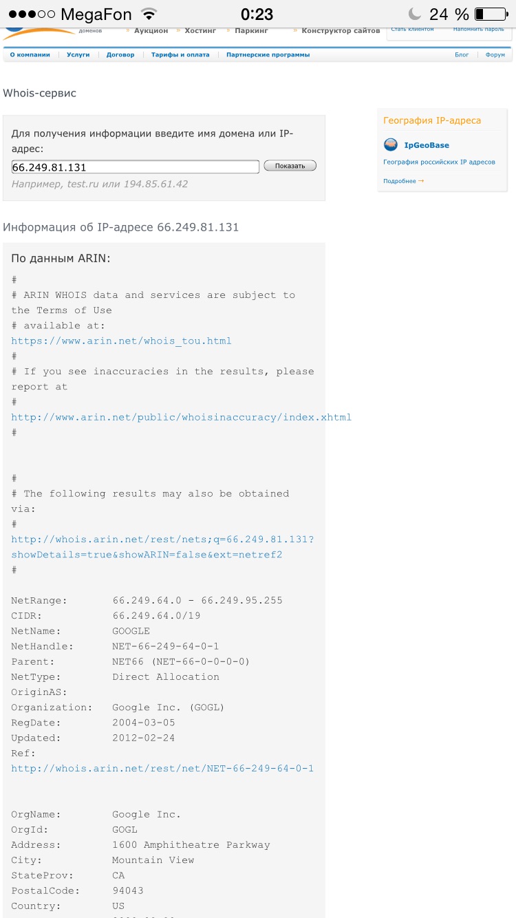 Re: Хочу померяться айпишникамиЗашёл на 2ip в мобиле. В Сафари реальный результат, а Хром гонит через прозрачный гуглопрокси. Вероятно, для точности сбора данных обо мне