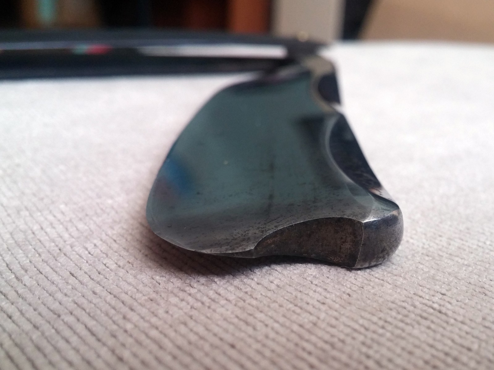Разобрал, почистил, заменил медные заклепки на латунь, заменил клинышек на новый из красного дерева, собрал и заточил. До Еще фото Spoiler Show Spoiler Show