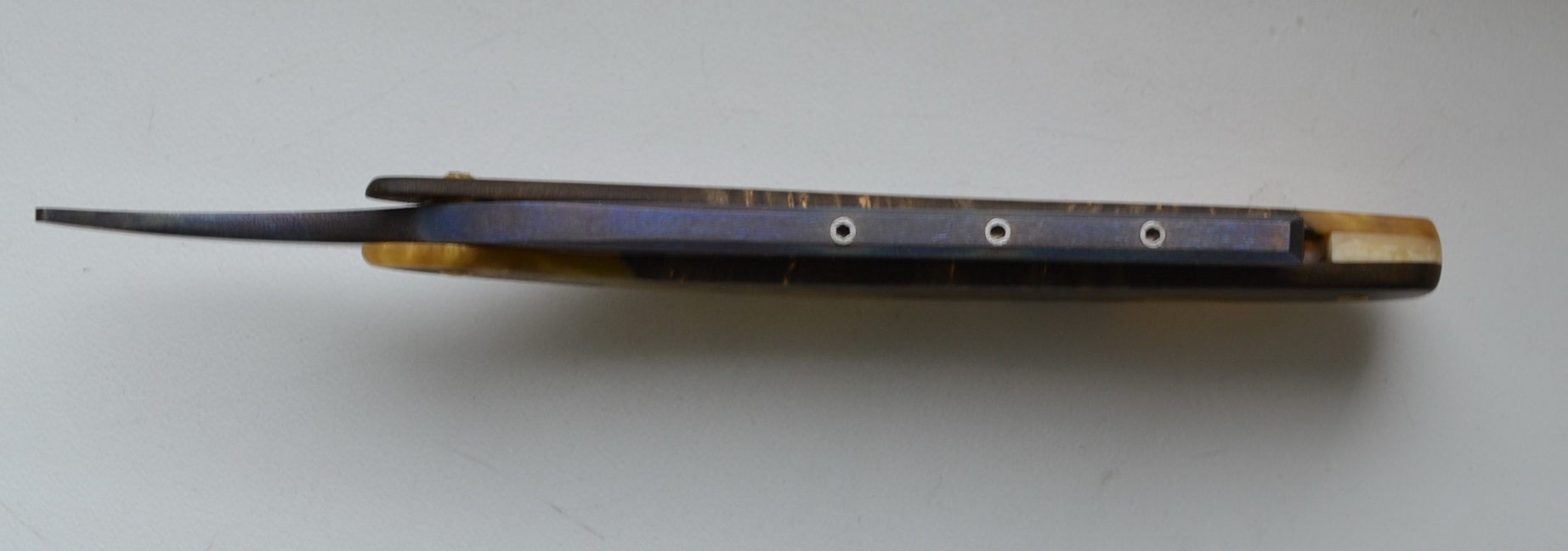 Самодельные опасные бритвы :: фототитан анодируют, а не оксидируют, во всяком случае я за оксидирование ничего не знаю, цвета получены нагревом, пробовал и анодированием и нагревом, анодированием больше вариантов цветов и один равномерный цвет проще получить, нагревом стойкость покрытия больше, проще и быстрее, но вот однородный цвет сложно сделать. С другой стороны я разноцветный хотел, потому специально не обезжиривал и да же местами масло капал