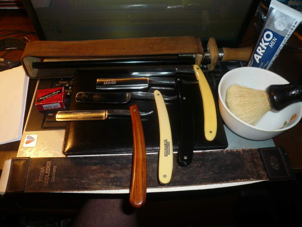 Всё что нужно помимо бритвы - ремень и всё. Два предмета на всю жизнь: 1. Ремень. 2. Опасная бритва. При этом не надо крутить туда сюда ничего, лезвия менять, волосы постоянно выколупывать из бритвы, потом всё открывать, вычищать...жуть, как вспомню, никаких приличных слов не остаётся для описаний...