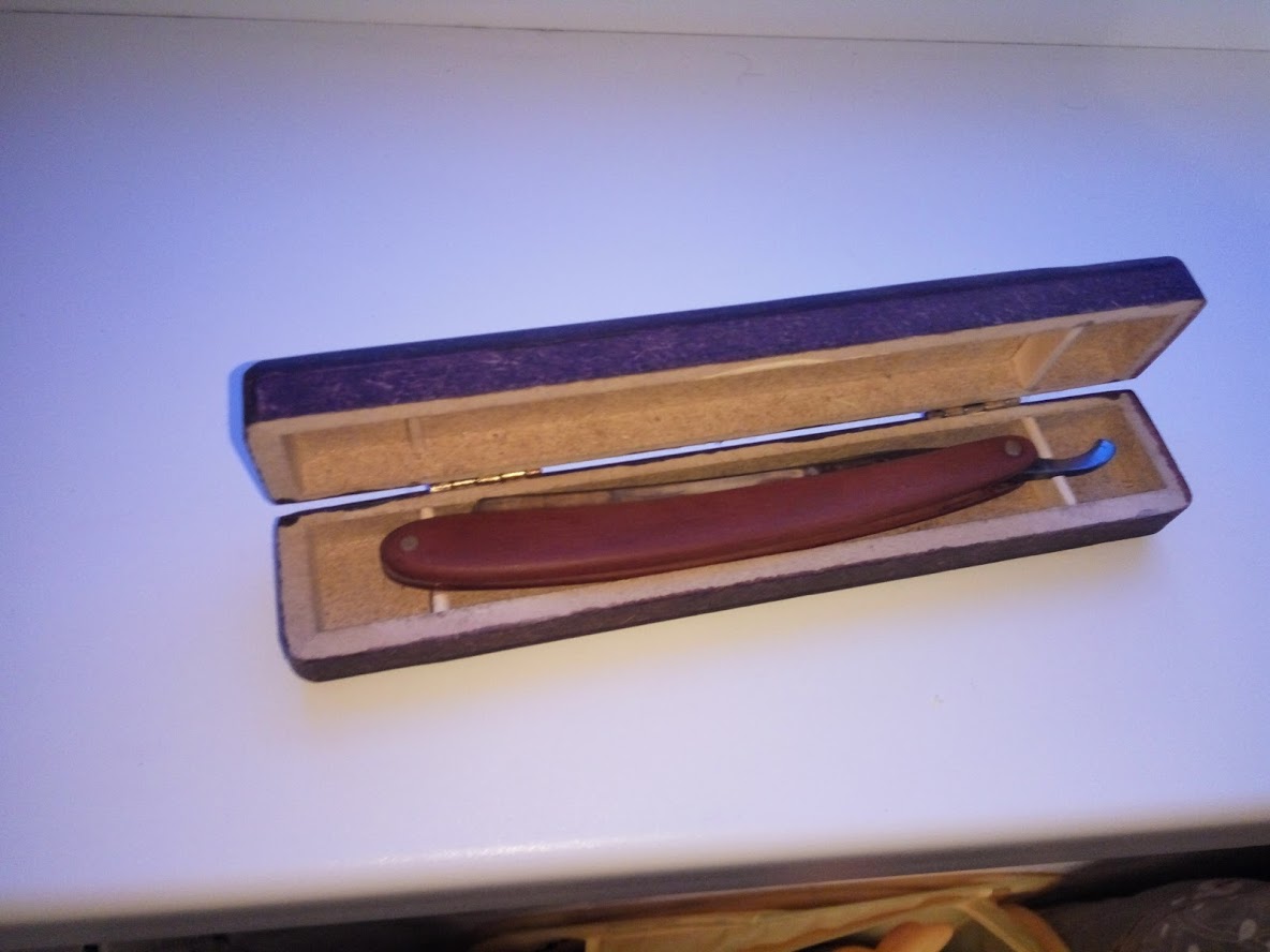 До После приведения в порядок и запиливания футлярчика из подручных материалов К сожалению бритва давно продана, "после" только эти