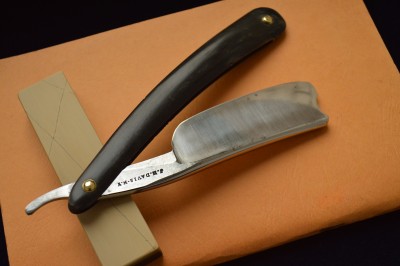 WADE&BUTCHER размером в 7/8 и полной вогнутостью. Никогда у меня не было такой крупной бритвы , с такой вогнутостью.Изящная,с аккуратным и тонком сведением, но в тоже время мощная и серьезная. Полотно на первом этапе было подготовлено методом ручной шлифовки на грубых камнях,с переходом на более тонкие абразивы,до 800 поперечной риски.Никакой патины на эрле в этот раз. Ещё раз отдельное спасибо нашему комраду Алексею Белякову за приведение оригинальной роговой ручки в идеальное состояние.Одна родная плашка была зашпаклевана и отполирована, а вторая, которая пришла разгрызанной ,была заменена на идентичную, того периода,с рифленой структурой материала.В итоге получилась совершенно оригинальная оправа, с одинаковыми плашками, как по структуре, так и по размеру.Родные пины были сохранены и заново установлены. До...