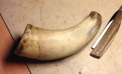 По просьбе покупателя переделал бритву Волна, вернее заменил ручку. Лежал у меня в подвале в дальнем ящике коровий рог. Не вспомню даже, как он ко мне попал. Но явно что-то из него хотели сделать высокохудожественное, с заклепками медными и пр... Spoiler Show Одним ударом дерева не срубишь. . Татарская поговорка