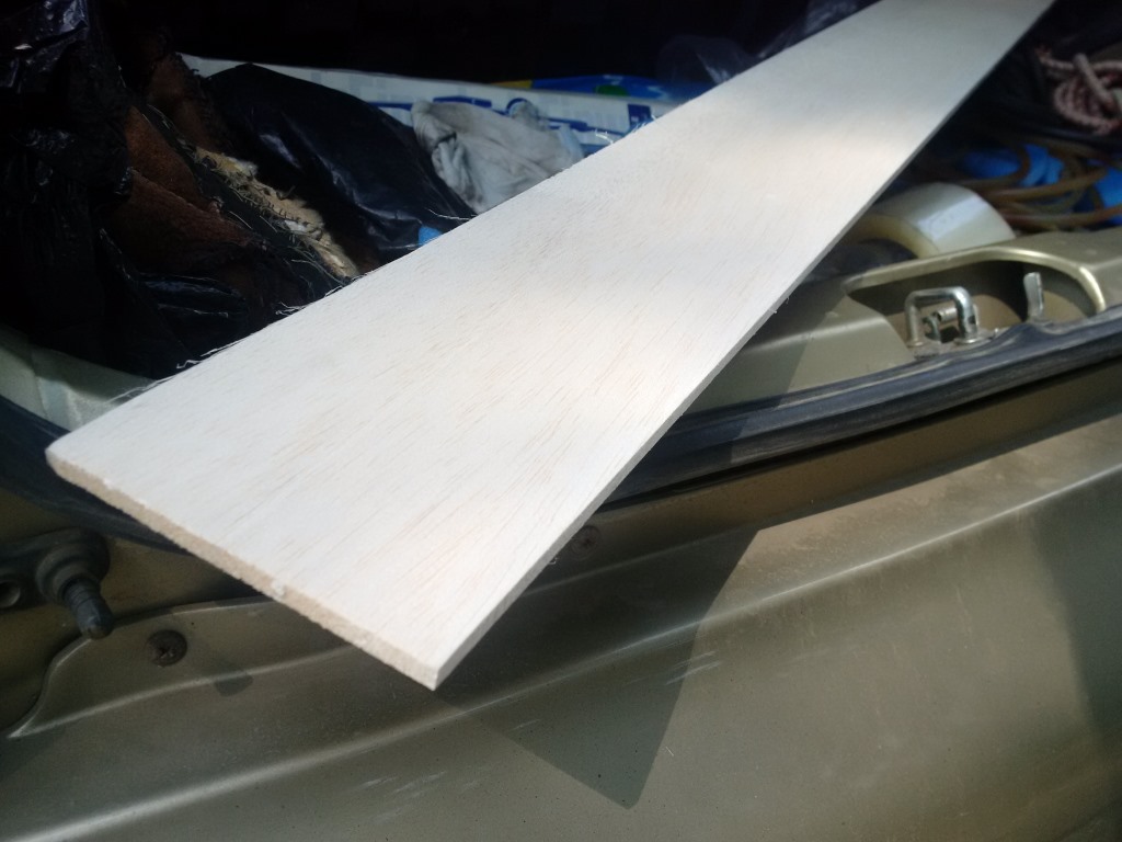 По совету камрадов была найдена бальса. Но только в ламелях размером 6х100х1000мм в магазине для авиамоделистов. Первый раз держал бальсу в руках. Неимоверно легкая и мягкая, продавливается и царапается ногтем.