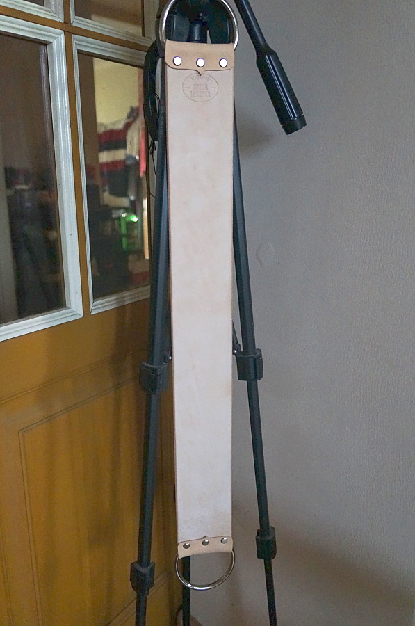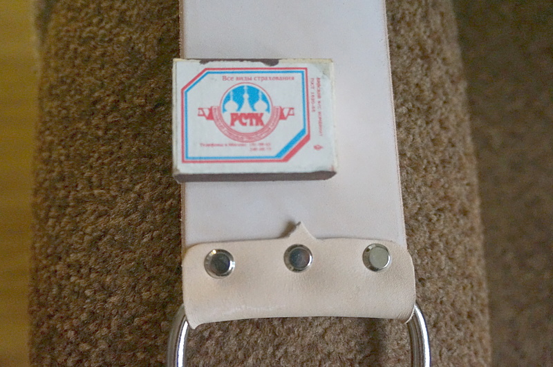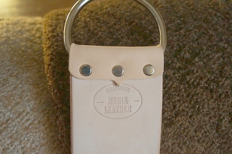 Захотелось сделать себе широкий ремень. Попросил Максима, (aka Моня), выслать кожу для бритвенного ремня. Рекламировать Моню смысла нет. Человек очень известный и уважаемый в своем деле. И. один из немногих, превосходный и очень добросовестный продавец. Испытано не раз, и не только мной  Он выслал мне ременную заготовку длиной 75, шириной 7,5 см., толшина - около 4,5 мм., а также D-кольца 2,5 дюймовые, которые хрен где найдешь и пару кусков кожи для обвязки и ручки. Ручку из кожи делать не стал, поставил полукольцо. К верхнему креплению пристегнул карабин. Сначала решил наждачкой не трогать, попробовал править - что то не устроило. Шлифанул чуток 1500 (3М) наждачкой. Заработал по другому. Короче, качество кожи превосходное, работает отлично, дешевле Канаямы в 5-7 раз  И. да, все таки на широком ремне править лучше безулыбчатую бритву. Слава богу, их есть