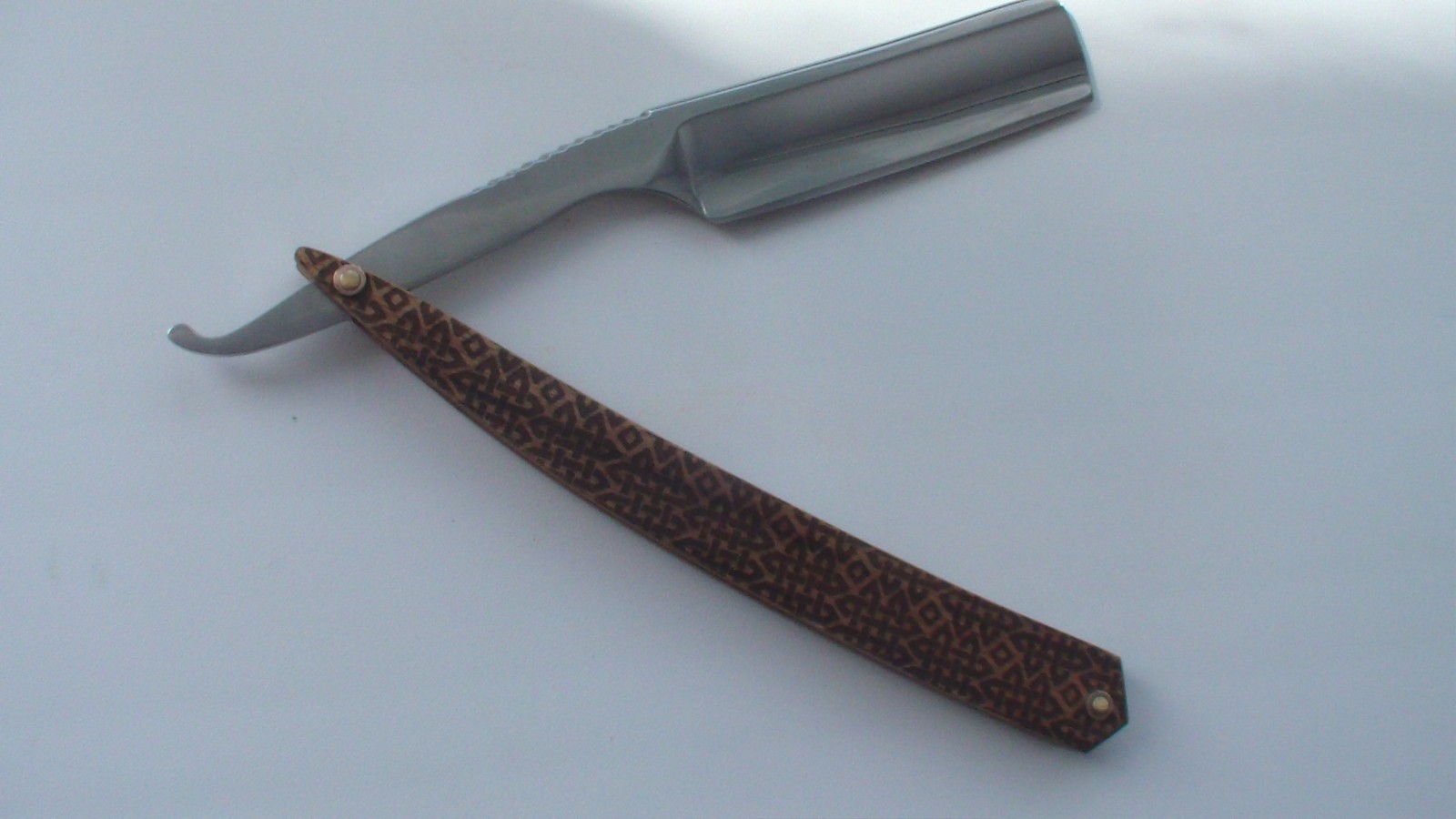 Кратко о бритве. При заказе бритвы была прислана фото бритвы Левиса со словами- "вот что то типа этого" После обсуждения появился такой вариант. Изгибы (изящество) + грубая железка( полированный сатин)При получении заказчик был доволен как форм фактором так и габаритами. Материалы У10, зебрано. закалка с самоотпуском.