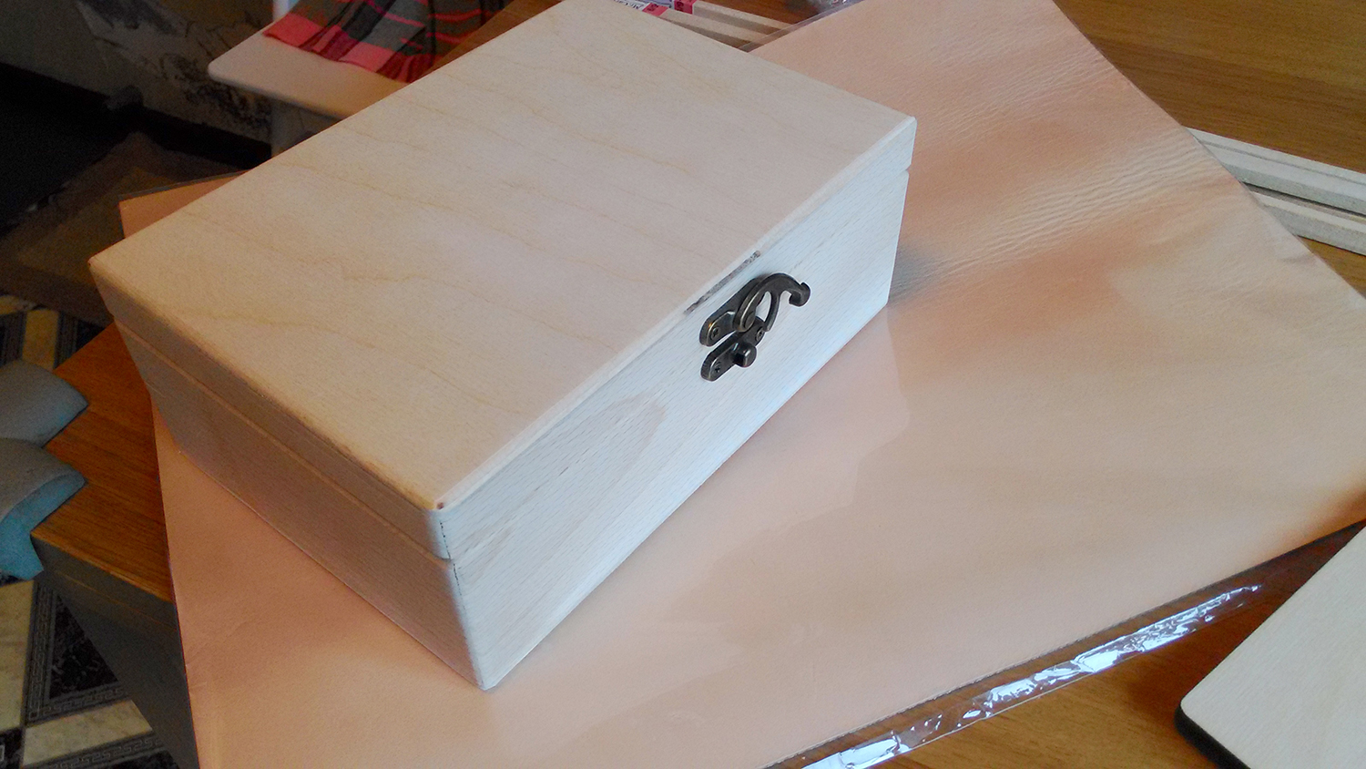 Растёшь... Ну а с крышкой что решил? Можно пару штырьков по центру перегородки между бритвами из дерева воткнуть поодаль друг от друга, а в крышке углубления под них (не надо насквозь) и вот решение. А можно ещё магнитик прицепить, если натяга не хватит штырькового для удержания крышки. Как вариант. Ну или фрезануть крышку, как на десяток постов выше... Или в углах по диагонали пару штырьков центрирующих, небольших, а по второй диагонали - магнитики... Re: Футляр для опасной бритвывот еще изделие из дерева. Первая четверть 20 века.