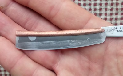 Травление клинка, восстановление рисунка.Кроме клинка ещё и с обушком решил побаловаться)