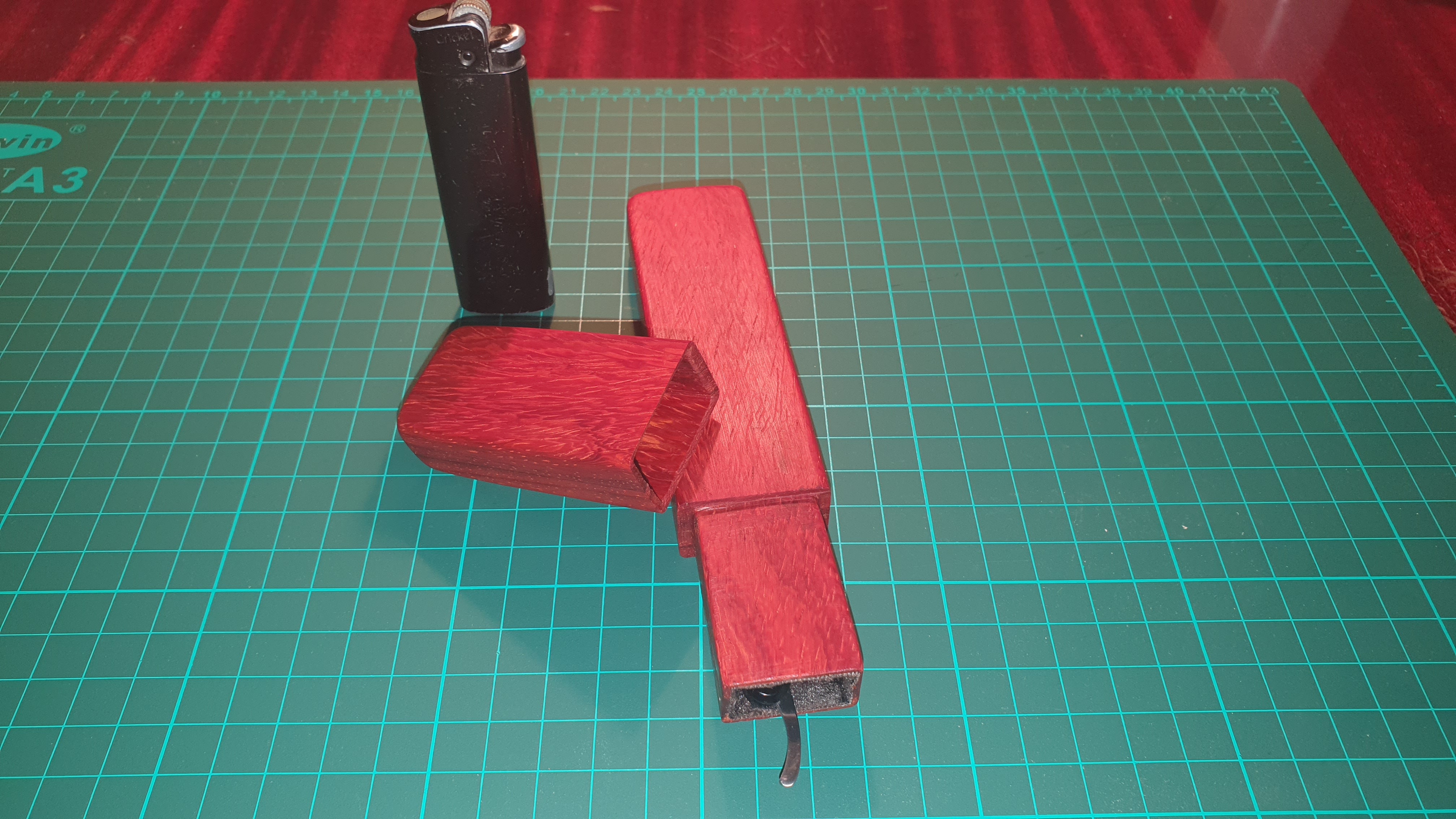 Клинковой бритвой увлекся совсем недавно, 4й месяц пошел. У знакомого приобрел бритву старенькую. Бритва была отреставрирована. Огромное спасибо WRENу. Но вот футлярчик был в совсем плачевном состоянии, да еще и не родной. Загорелся идеей собственноручно запилить футляр. Последний раз такими поделками занимался еще наверное в школе на трудах, а это больше 20ти лет назад. Для изготовления использовал падук. Внутри черным бархатом обклеил.