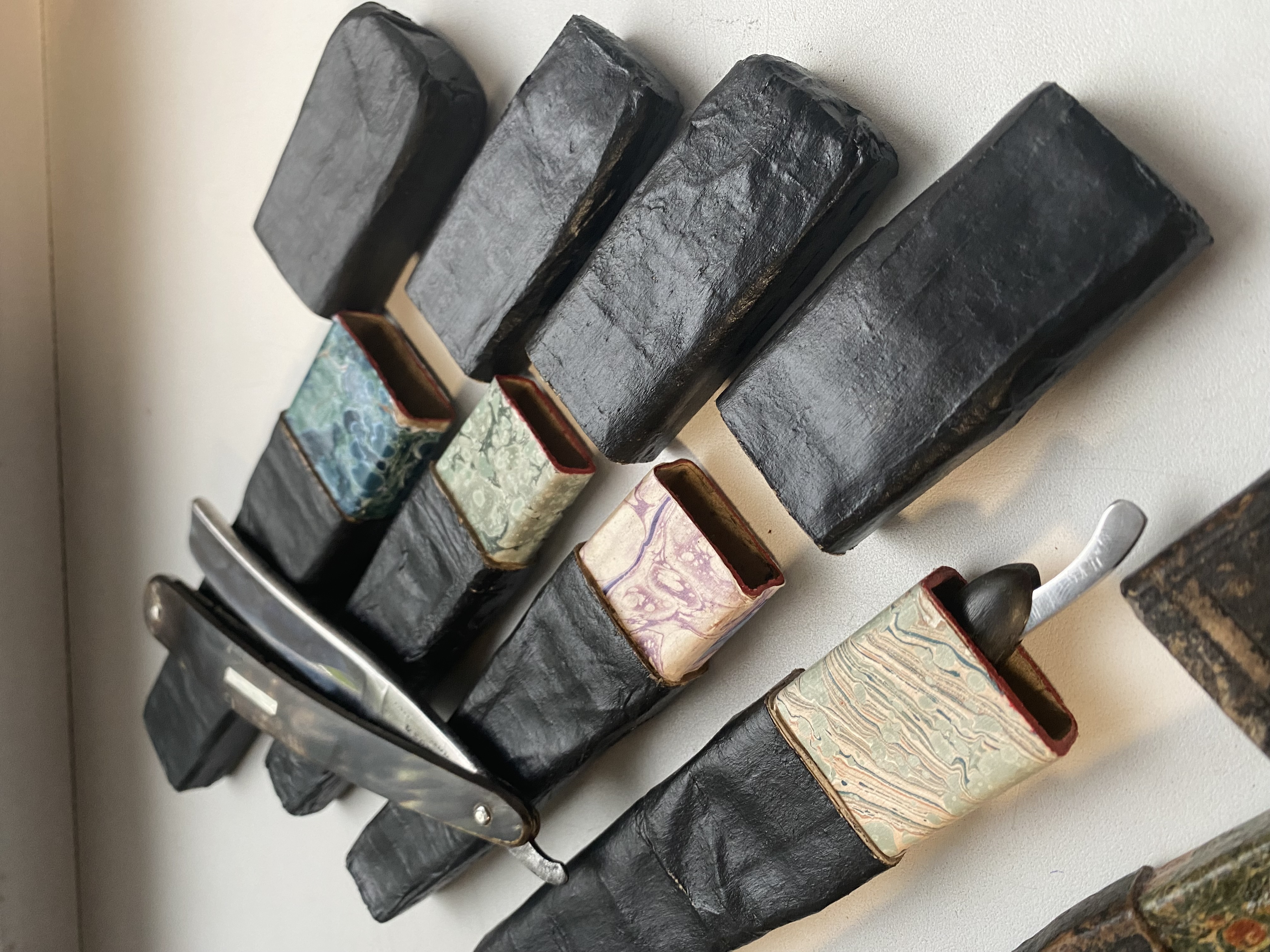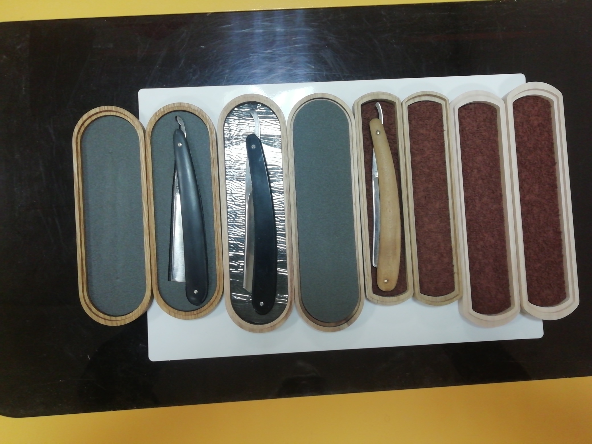 Встал вопрос о созданиии футляров для маленьких бритв конца 18 века, решил не «изобретать велосипед» и попробовал сделать реплику тех самых футляров в виде «гроба» Вот такие первые прототипы получились.