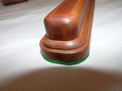 Особого практического значения крышка не имеет, так - антипыль... Материал тот же - красное дерево. Спецом делаю "крупные" фото чтоб посмотреть переливы дерева под светом. Даниш и француский мебельный воск. Поскольку подставка под конкретную бритву от ГВИКа, то все вырезы максимально повторяют профиль и габариты бритвы как у самой подставки, так и крышки - они "облегают" бритву со всех сторон. (Не знаю, нужно или нет, но вот добил для интереса.) PS И да, здесь на фотах сама подставка уже с фетром, неплохо смотрится на полированном итальянском комодике у меня в спальне.
