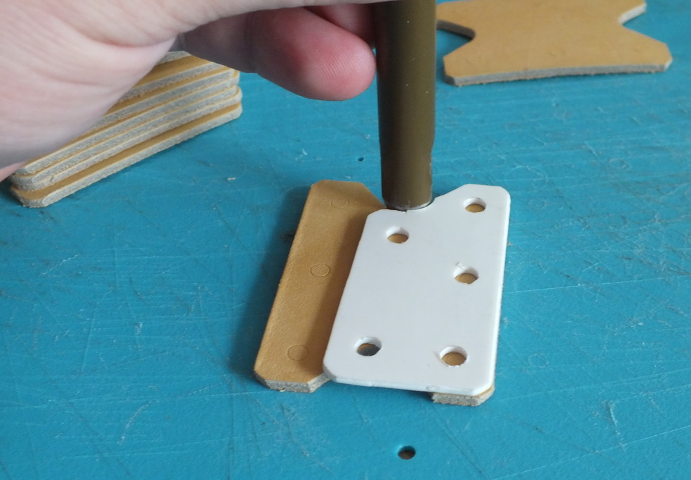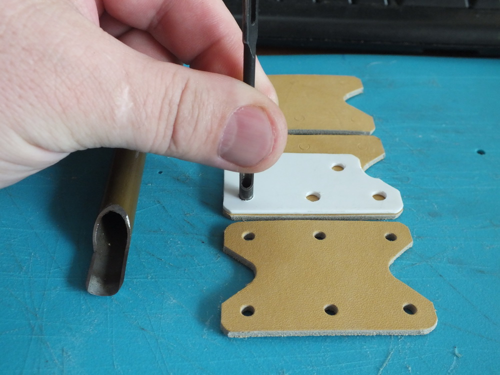 Работа получается аккуратная и однообразная. И изготовить вырубки разных диаметров. У меня две. Диаметром 9 мм., для закруглений и 3 мм. для заклепок. 32 года активно мусолю харю клинковой бритвой