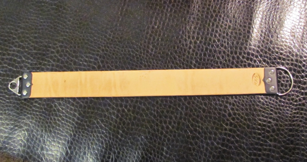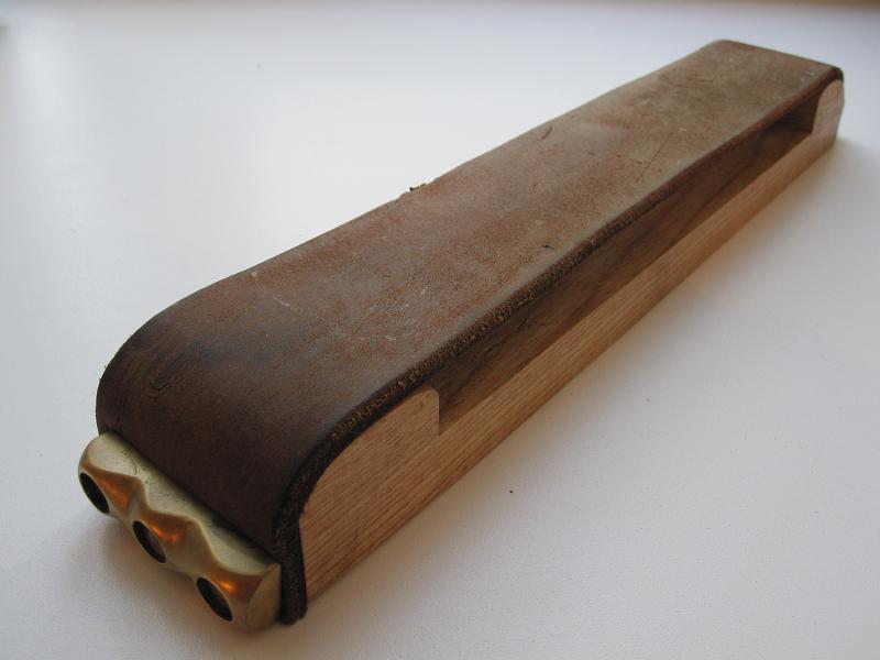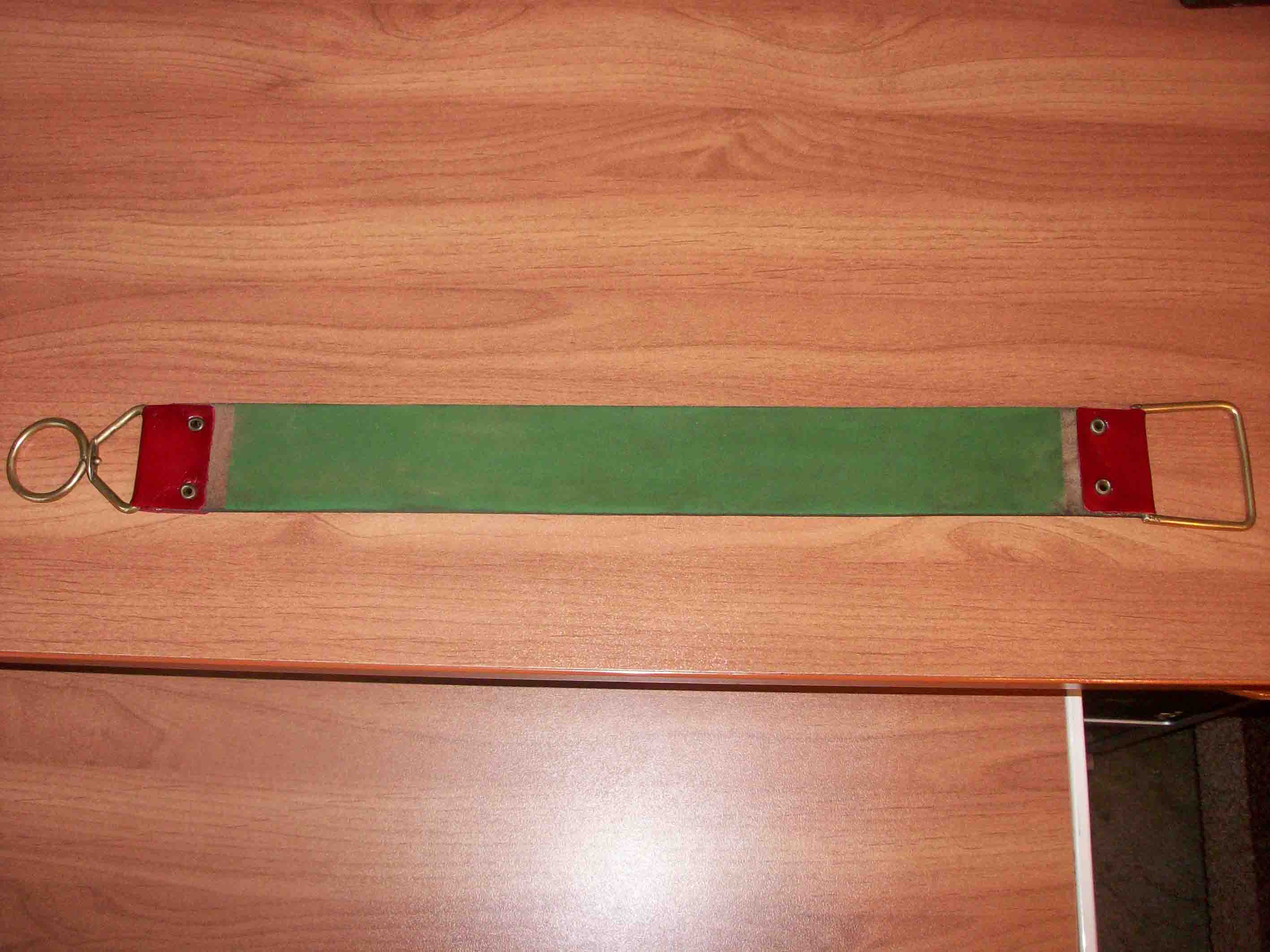 По случаю досталась кожа,состояние не очень,но понравилась выделка.Решил исделать такой вот ремень, для натяжки обычно мочил кожу,растягивал и при высыхании она натягивалась.Эта не натянулась,а провисла,пришлось просто натягивать высохшую кожу.Но ремень правит просто класс.