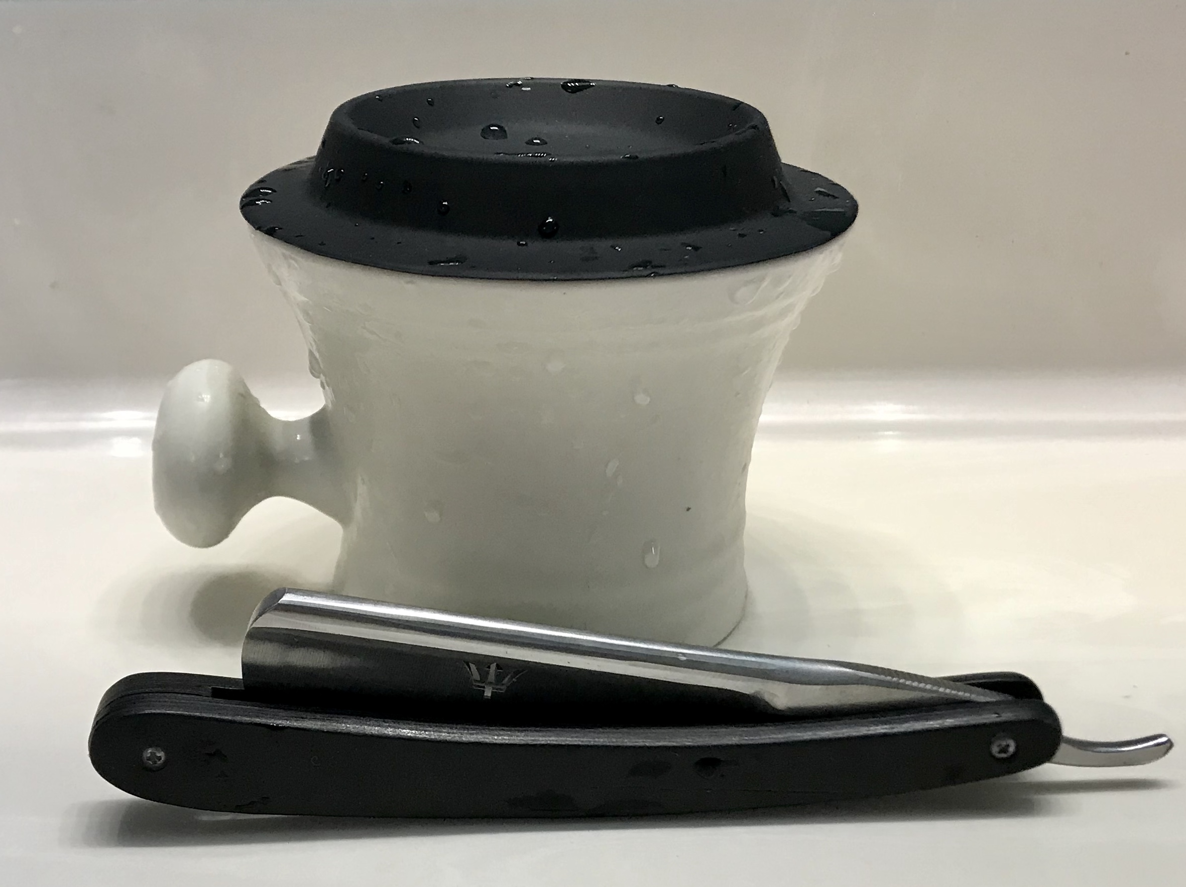 Кружка для бритья из силиконаиика, вот еще возможная тема для силикона: штукенция для вытирания пены с клинка по ходу бритья. У англичан была популярна, позволяла очищать клинок без воды и без риска коцнуть клинок об кран. Хотя есть совсем простая и популярная супер-дешевая альтернатива - обычная мягкая губка.