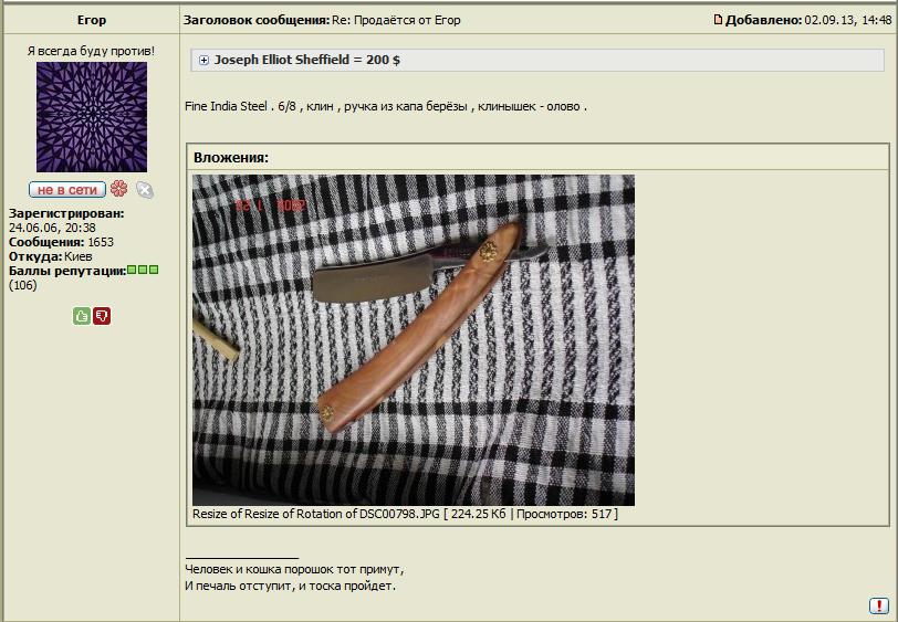 Да он это. Ну заходит через страницу своей (жены, дочери, внучки, продолжите список...) в контакт. Там торгует. Реставрирует бритвы, комментирует грамотно. Фотографирует свои бритвы на фоне гламурных платочков, опять же, из Киева. Посмортите фотки сами.