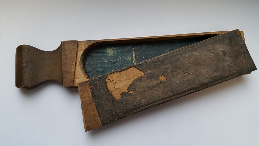 А у меня теперь вот такой ретро-футляр, сегодня вернулся от мастера с тотальной реставрации. Опыта использования пока нет))) Достался в раздолбаном виде как довесок к старому клину на ebay. Кожа новая. Дно отсека выстлано алькантарой. Дерево покрыто в несколько слоев данишем.