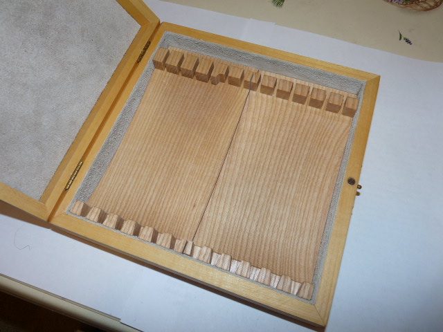 Попробовал сделать вкладыш из ясеня, в данном случае, для своей коробки, купленной в хобби-центре когда-то, кажется (на первом фото - то, что было "до того, как...").
