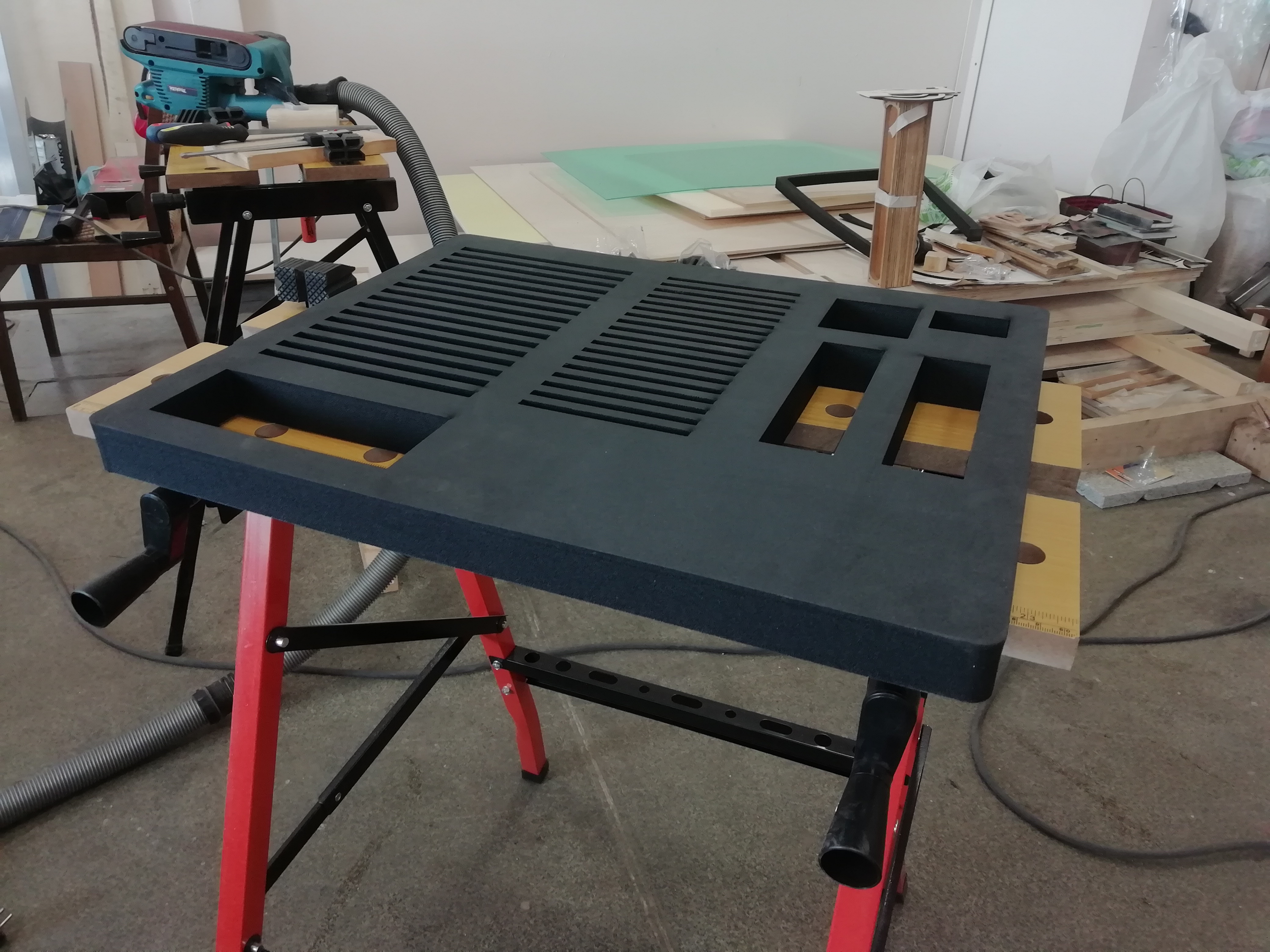 Процесс изготовления изделий околобритвенной тематикиЕщё - ложемент. Этот - для образцов стекла и прочих строй материалов.