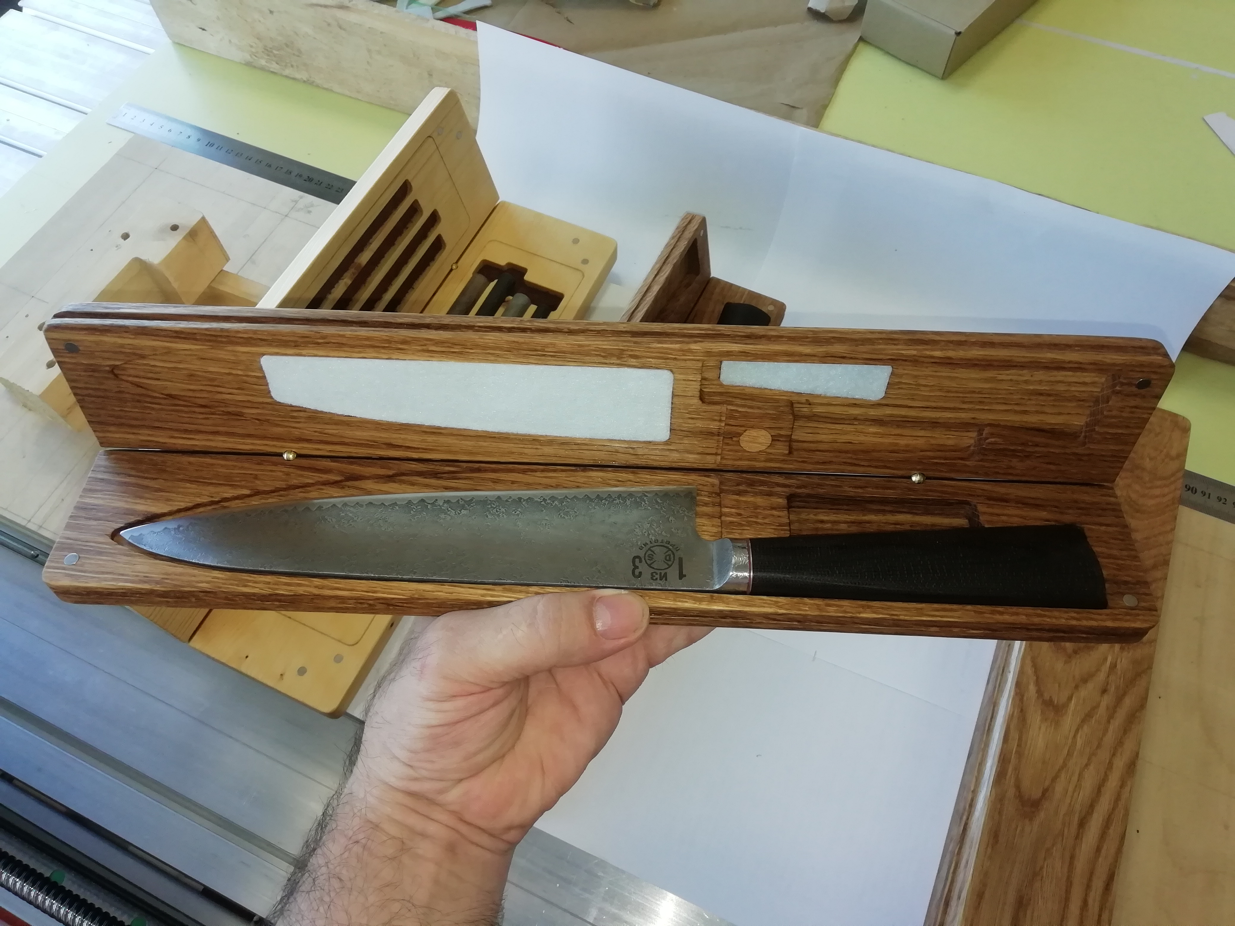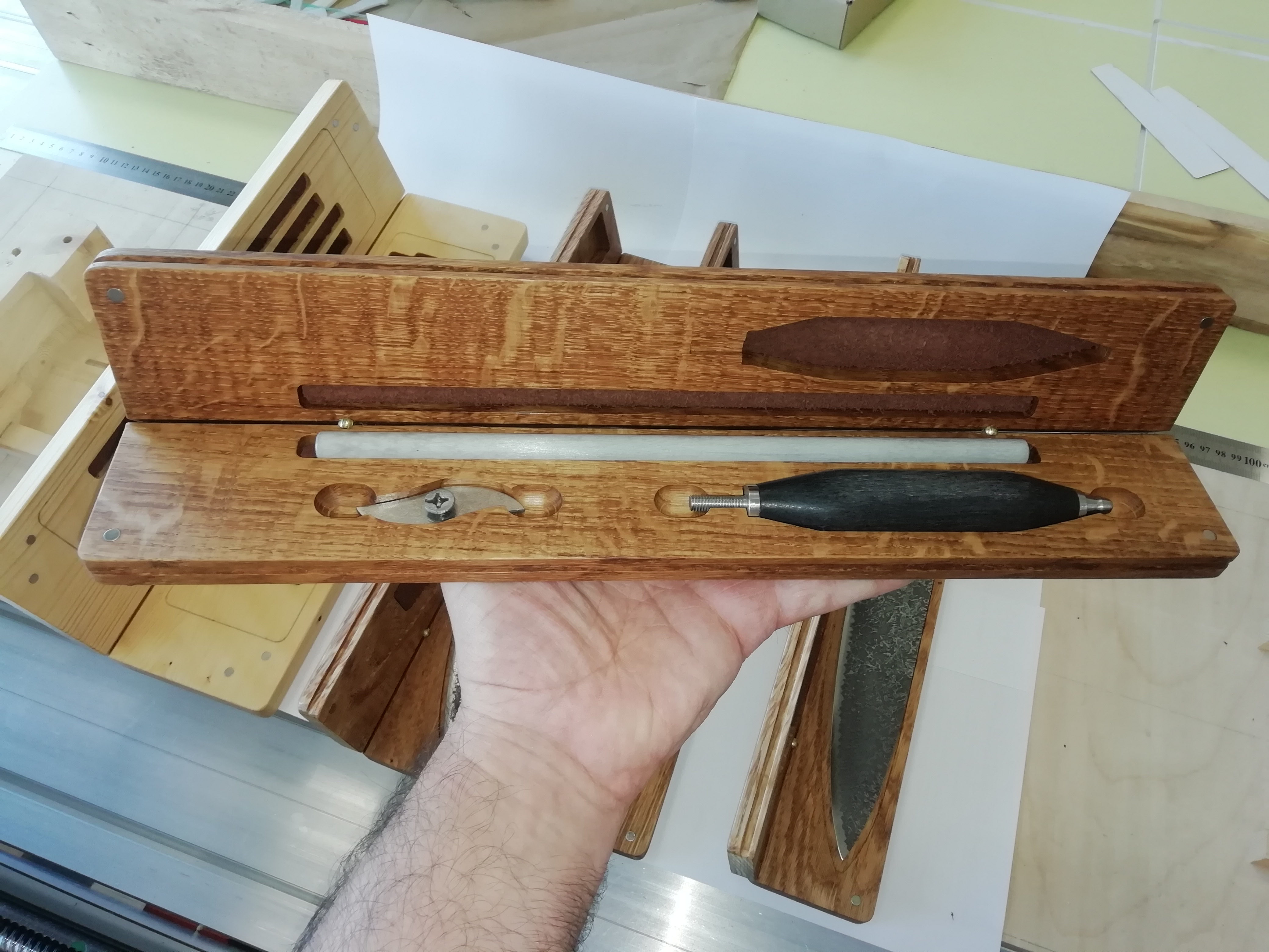 Процесс изготовления изделий околобритвенной тематикиА вот футляры для 3х еретических тут ножей и 5ти циркониевых ( Микрооксидированный титан-циркониевый сплав) мусата: