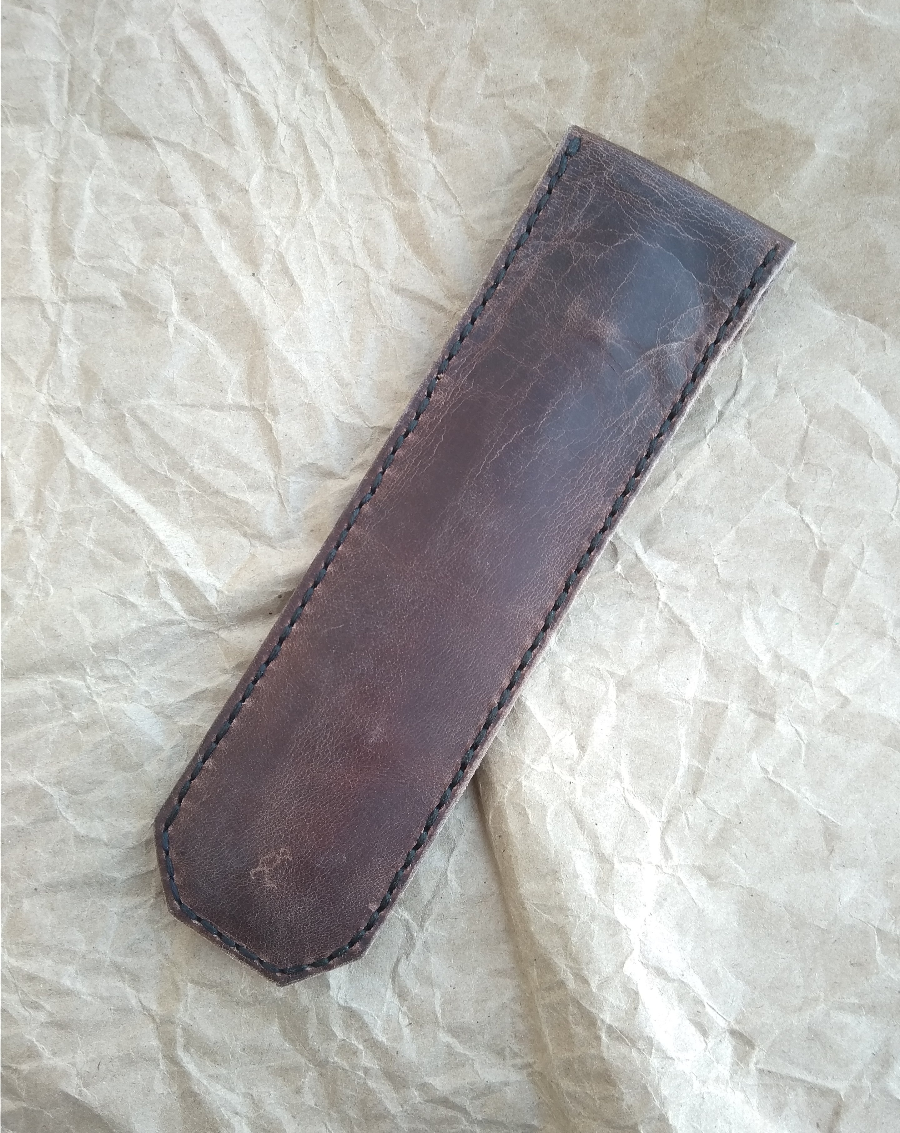 Футляр для опасной бритвыВзял кожу, нитки, иголки и слепил одному клёвому парню чехольчик)