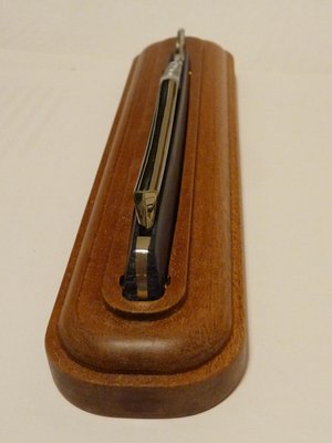 Красное дерево, даниш, затем воск мебельный, полировка. Подставка под конкретную бритву от ГВИКа (ручка из юмы/элфорина - моя, клинок от ГВИКа - спецзаказ). Возможно ещё сделаю для этой подставки колпачек, тоже из красного дерева... PS Фотки делал с линзой 10х, потому есть хорошее увеличение, если рассматривать... Добавлено спустя 8 минут 32 секунды: Последние три фото (вид - подставка снизу - там планирую фетр прилепить ярко-зелёный для контрасту - чтоб на полированном коммодике в спальне стояло, и не царапало полировку) - показал как переливается цвет дерева "золотым на темно-красном" в зависимости от наклона и освещенности.
