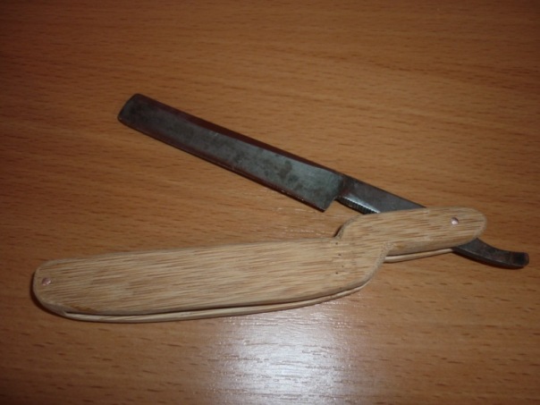 Я тоже недавно свою первую ручку произвел на свет, сегодня наконец удалось её сфотографировать.. Так, что тоже выкладываю свой "первый блин":) Челябинские мужики настолько суровы, что правят бритву не на ремне, а на роже.