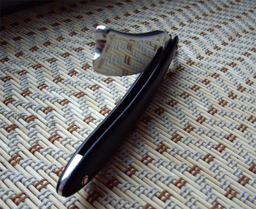 Добавлено спустя 1 минуту 50 секунд: Ну стиль то я не менял, просто рог пришлось на эбонит заменить. Челябинские мужики настолько суровы, что правят бритву не на ремне, а на роже.