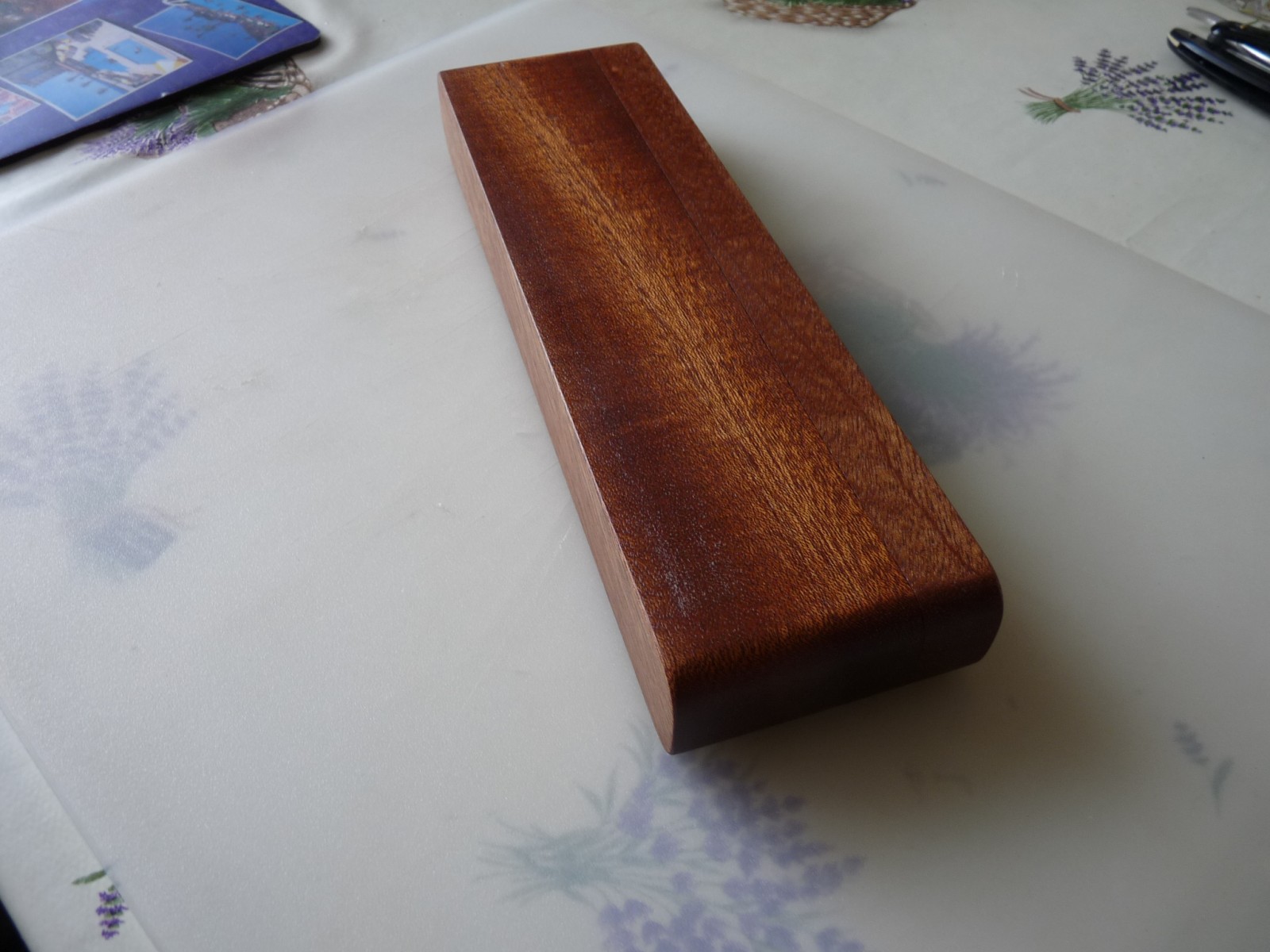 Re: Процесс изготовления изделий околобритвенной тематикиНу вот наконец то закончил футляр для лекальной линейки, процесс изготовления которой был показан выше. То есть все решения приняты, не стал никак украшать вырезами, картинками, надписями и т.д. снаружи, отшлифовал, покрыл ТикОйлом, затем воском, располировал.