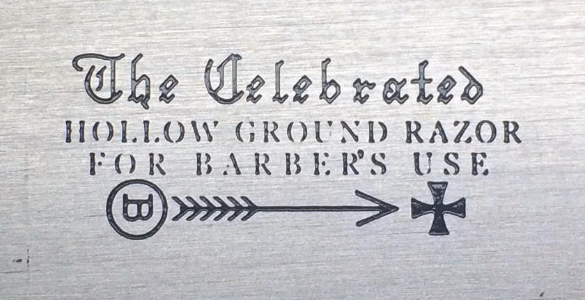 А по поводу стрелы. Вот глянь две разные фотки от старых бритв (выше) в одной явно видны тонкие палки. А у другой... кажется как у тебя, НО а м.б. раствор стек в капли по углам. Тут можно долго спорить. А по поводу оперения. Количество перьев зависело еще кстати и от товара. На стамесках по моему было 3 пера. Сейчас искать лень - но это страница каталога рекламная Батчера. Там разные лого