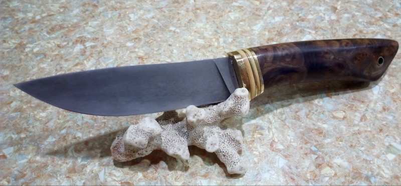 Вот вам финочка Х12МФ, 140*22*4, карельская берёза, латунь, лось, фибра. Прошу обращаться ко мне на "ТЫ". На "ВЫ", только, если хотите со мной ругаться, либо пытаться в общении со мной повысить своё ЧСВ.