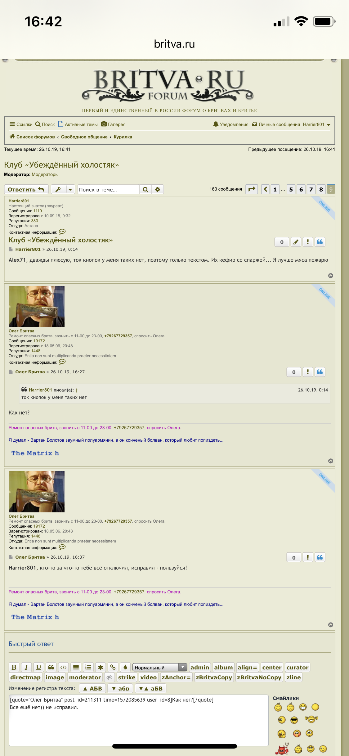 Клуб «Убеждённый холостяк»Как нет? Ремонт опасных бритв, звонить с 11-00 до 23-00, +79267729357, (whats app, telegram, VK), спросить Олега.