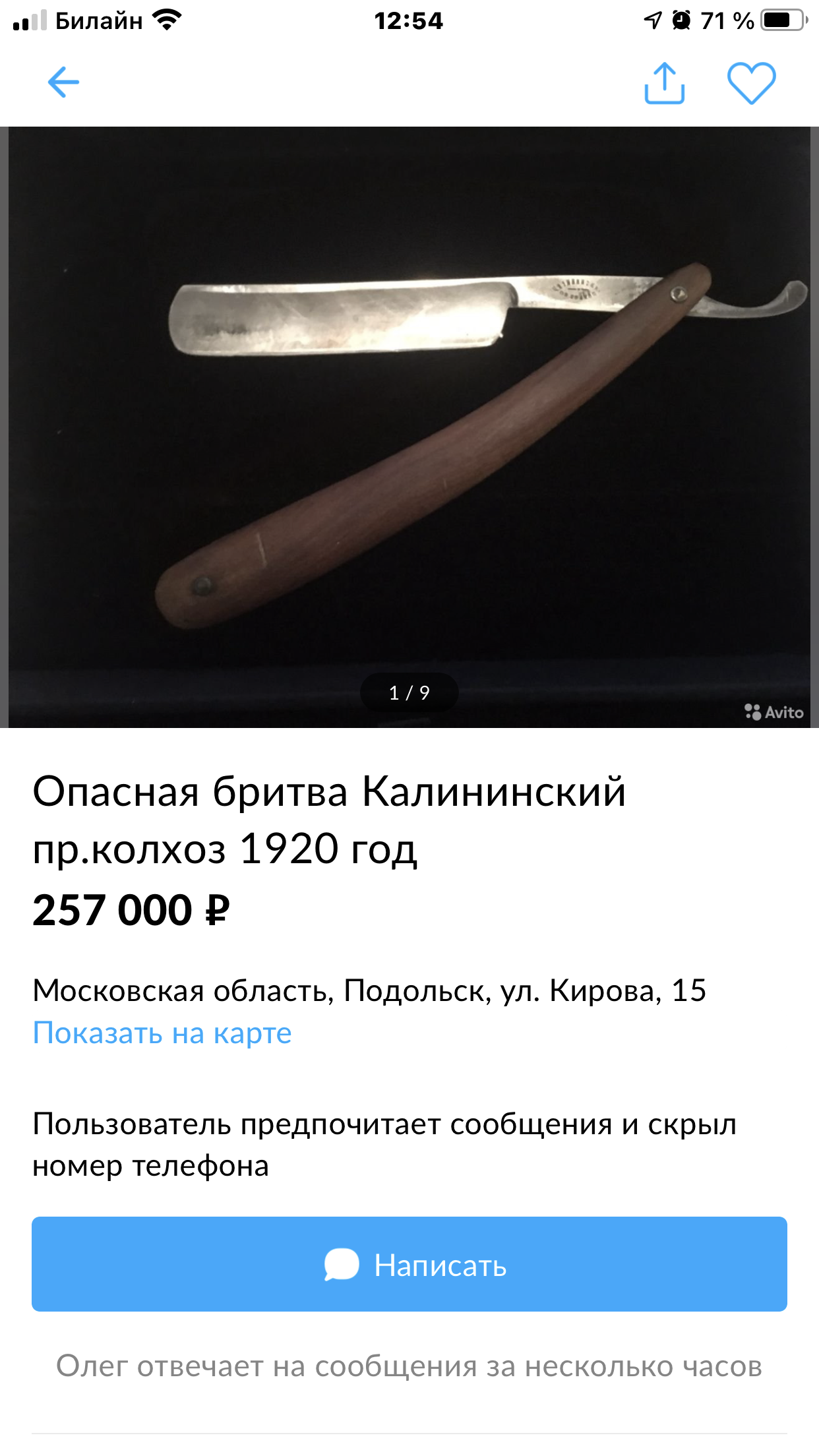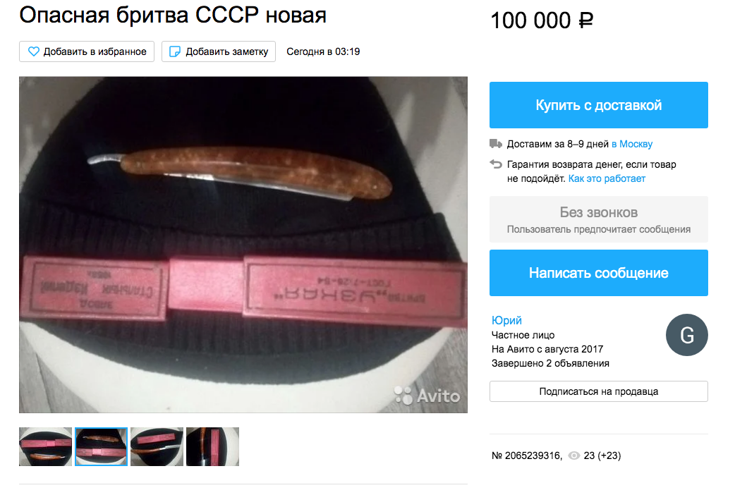 Обман и кидалово на АвитоСегодня наткнулся на такое объявление. (https://www.avito.ru/amursk/krasota_i_z ... ion=621540 ). После чего решил уступить все свои Советские бритвы по 95 000... Кому интересно - налетай, пока подешевело...