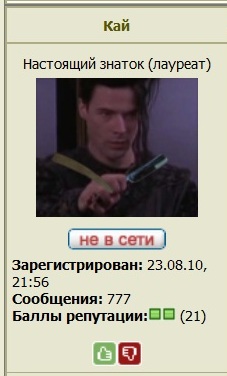 Сообщений 777 ( Джекпот Репутация 21 ( У картежников -очко, а это фарт) Красиво сложились циферки.