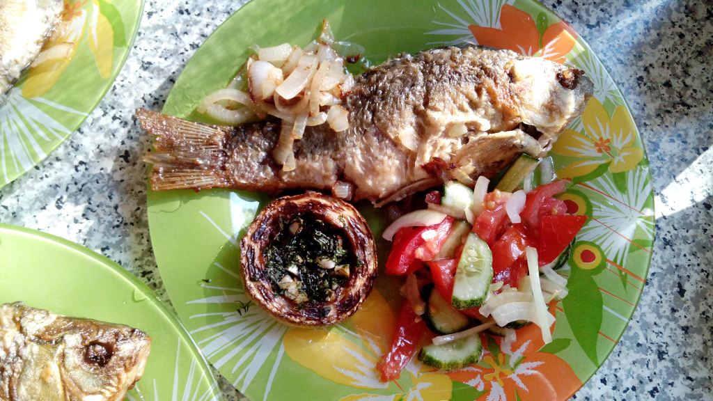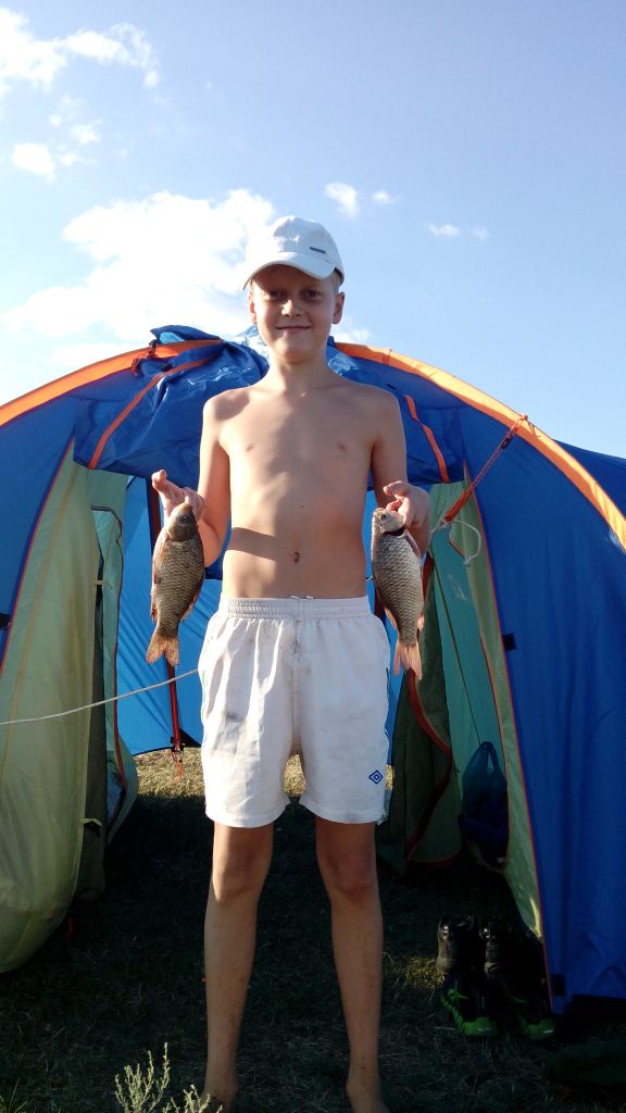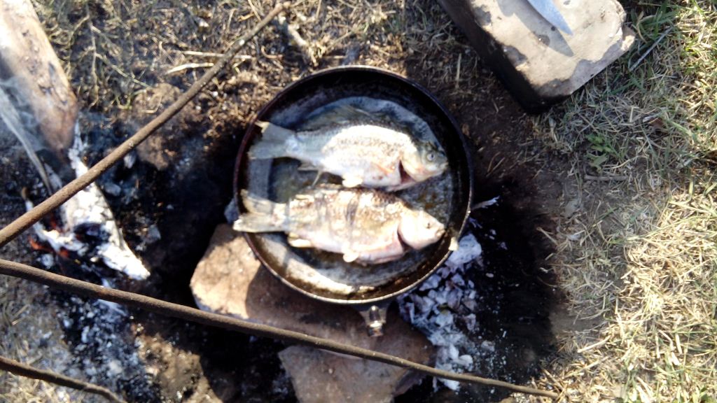 Re: Как и что мы едим и пьёмДобра всем, камрадэ. Совершенно случайно вырвался на рыбалку. За карасём отправились с сыном. Не прошло и получаса, как закинули крючки и тут...