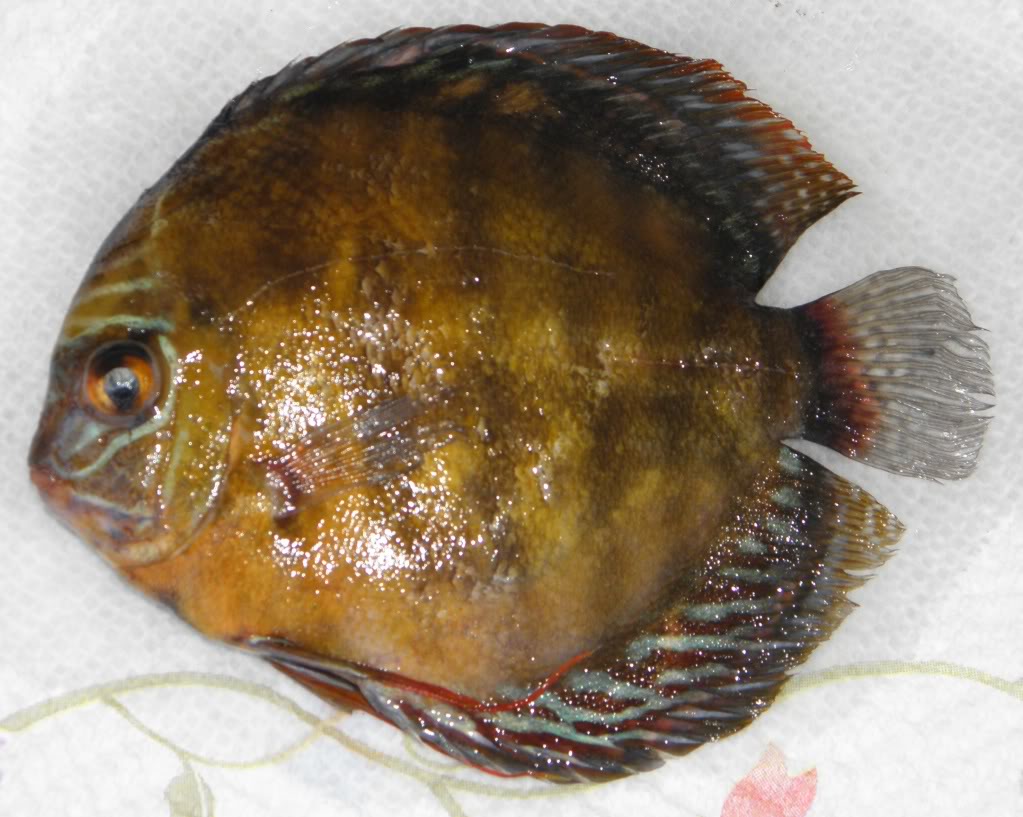 Первые результаты мы получили уже ночью, когда было отловлено несколько годовалых экземпляров дискусов. Парадокс заключался в том, что на них полностью отсутствовали внешние паразиты и признаки каких либо болезней. Это были очень крепкие и здоровые рыбы. Путешествие пришлось прервать для сохранения улова. Рыбы были доставлены в город Икитос на карантинную базу. Лекарственных и профилактических препаратов не использовалось. Дискусы были рассажены по одной особи в каждый аквариум. Парадоксальным было то, что они не страдали потерей аппетита, вызванной стрессом во время транспортировки. Через неделю все рыбы заболели. Это было какое-то расстройство пищеварительной системы. Несколько особей были обследованы путем изучения содержимого кишечника. Гельминтозов не было выявлено. Предположили, что это флагеллаты. Рыб лечили стандартным способом – в воду вносили трихопол (метронидазол). Результат не заставил долго ждать, все рыбы выздоровели. Контрольные особи, не подвергшиеся обработке, погибли за последующие десять дней. Заболевание развивалось стремительно, но и лечилось достаточно просто.